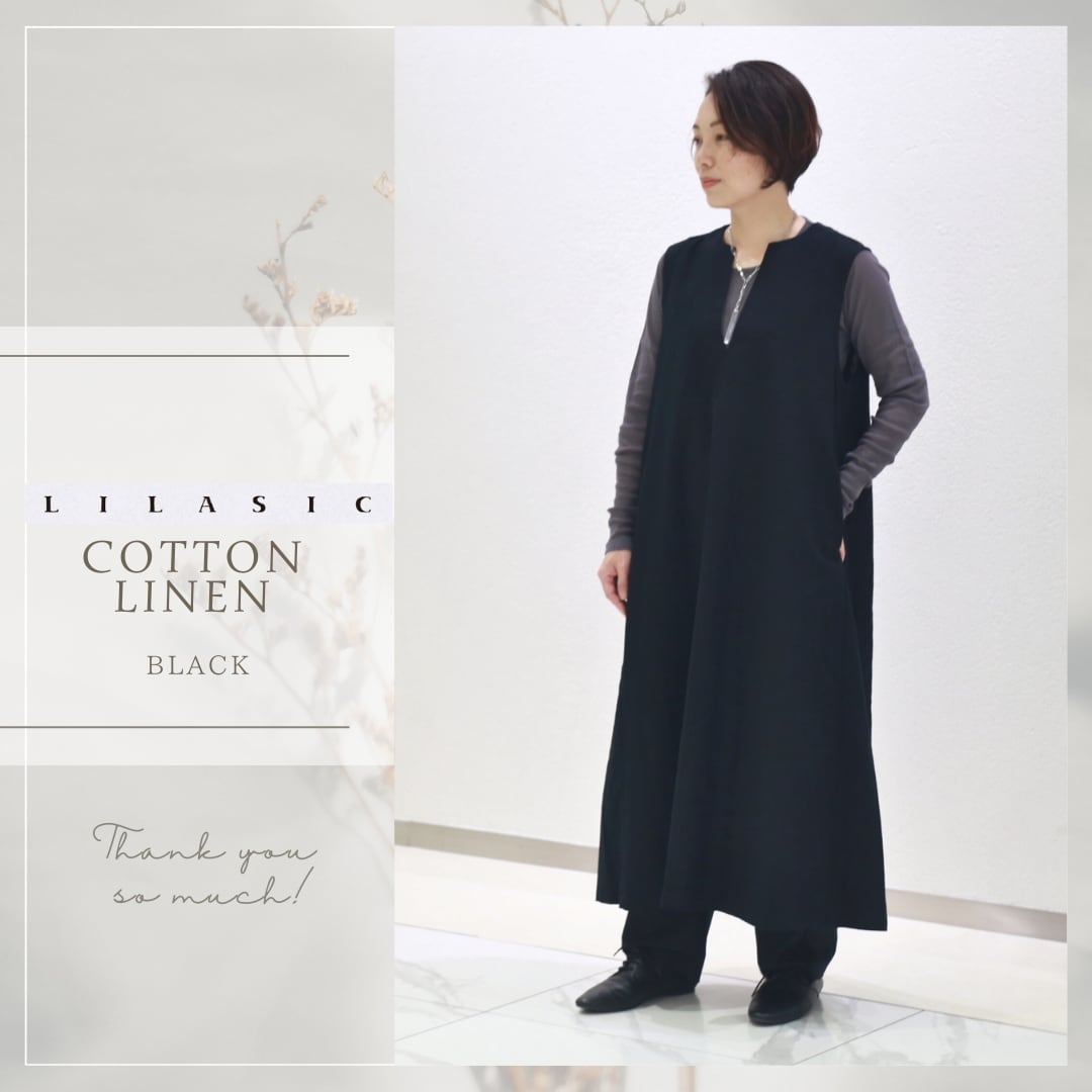 LILASIC/SCTJ5094/リラシク/リネンコットンVネックワンピース/タックワンピ/袖なしワンピース/ジレワンピース/ナチュラルワンピース/リネンワンピース