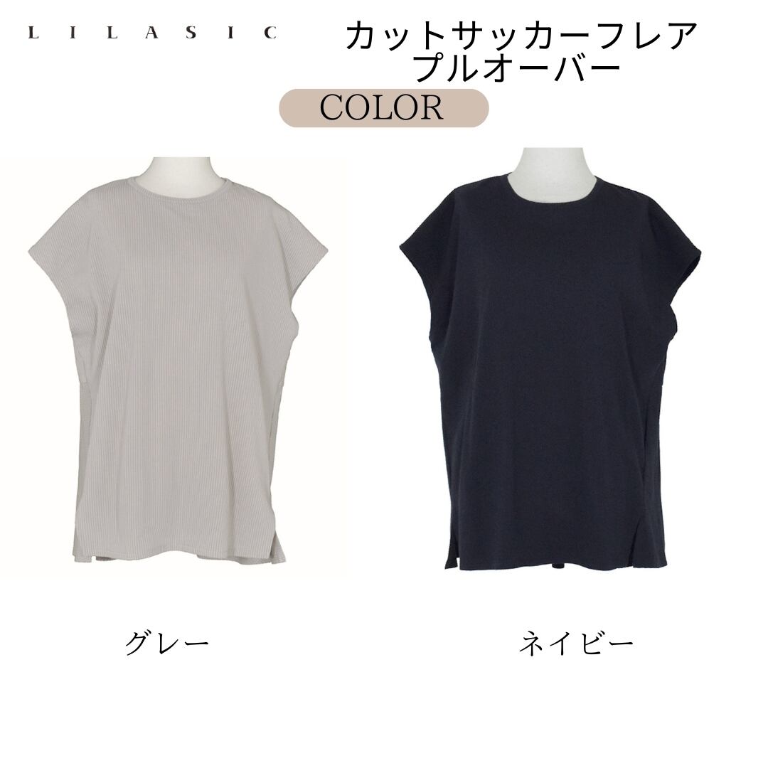 LILASIC/ SFCE5458/リラシク/カットサッカーフレアプルオーバー/薄フレアトップス/柔らかトップス/ペプラムカットソー/ヒップカバーカットソー
