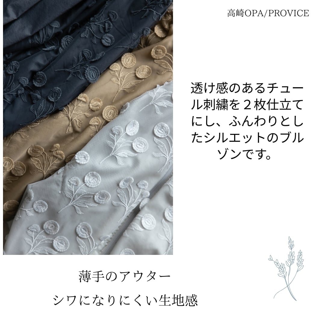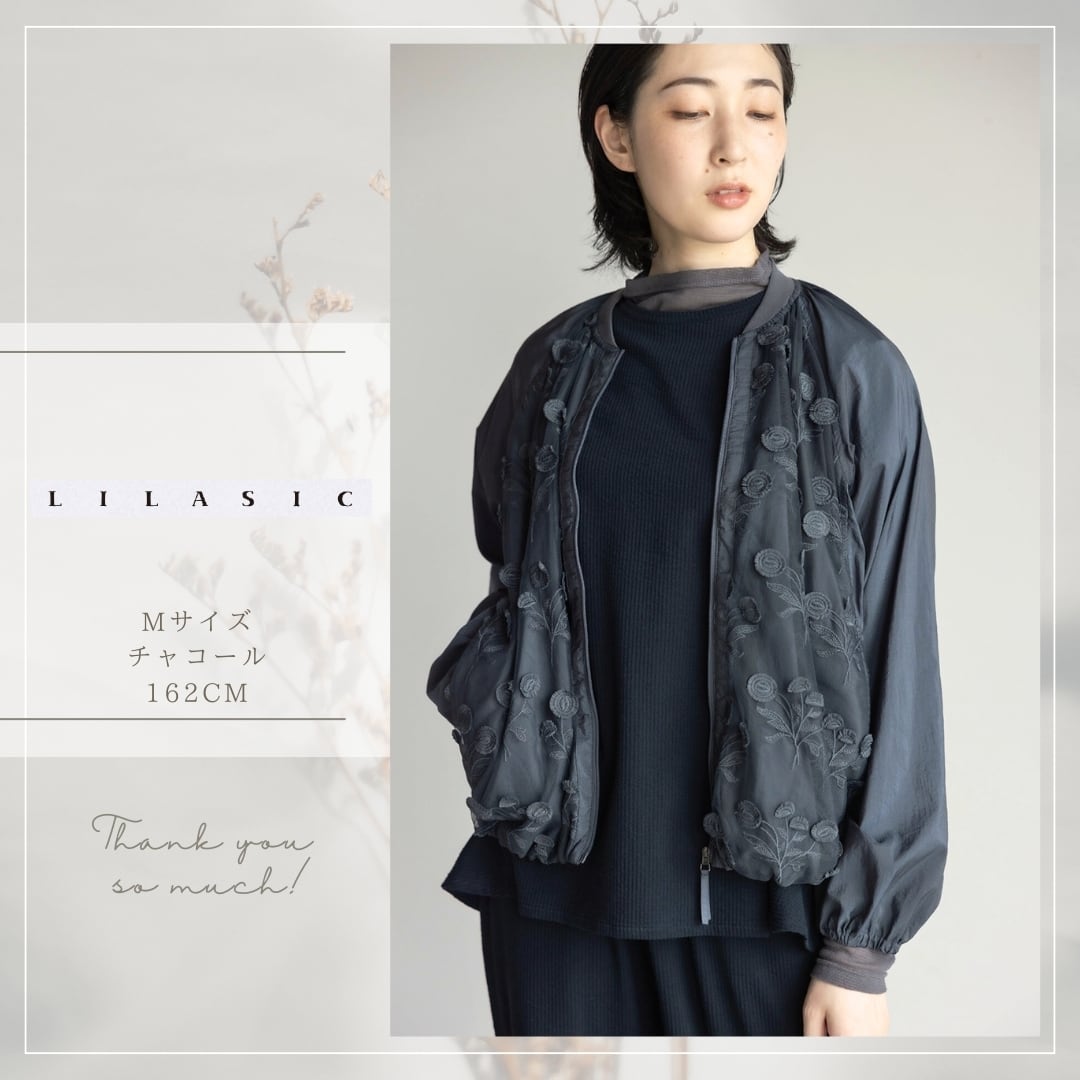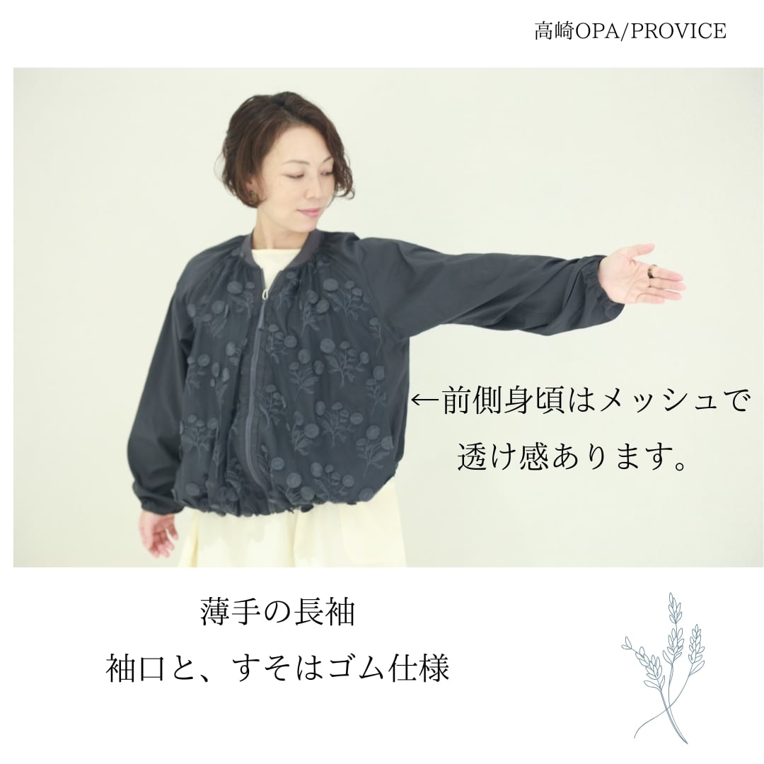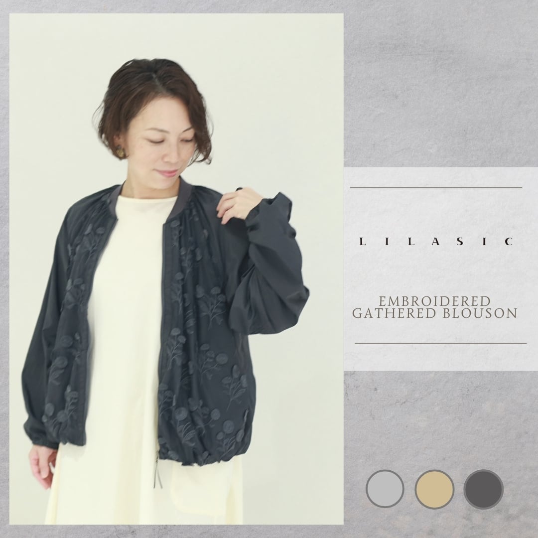 LILASIC/SFJ75444/リラシク/エンブロイダリーギャザーブルゾン /薄羽織り/シワになりにくい/ジップブルゾン/刺繍ブルゾン/刺繍アウター