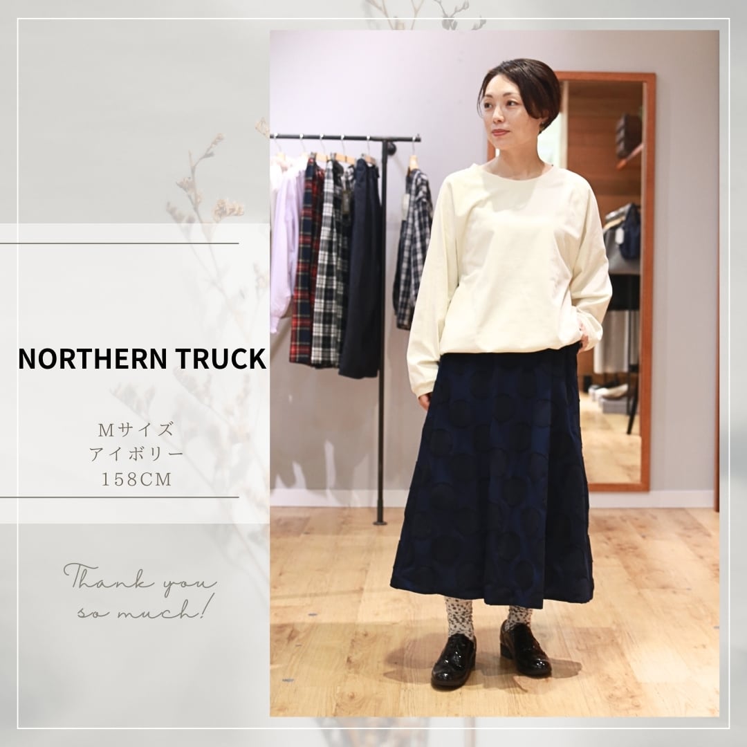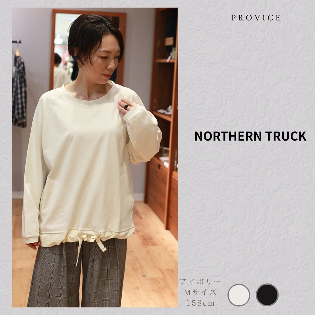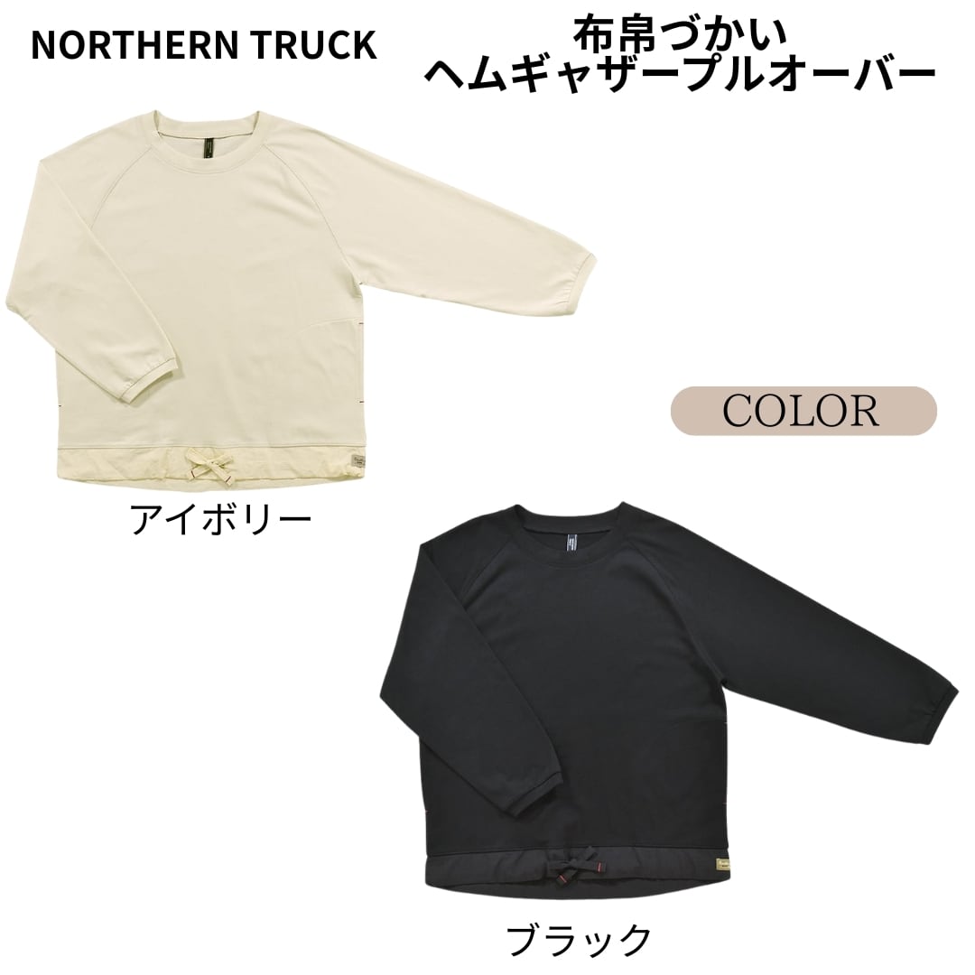 NORTHRN TRUCK/NGC35509/ノーザントラック/布帛づかいヘムギャザープルオーバー /長Tシャツ/長袖カットソー/バルーンすそ/春秋カットソー/長めの丈トップス/布帛切替え