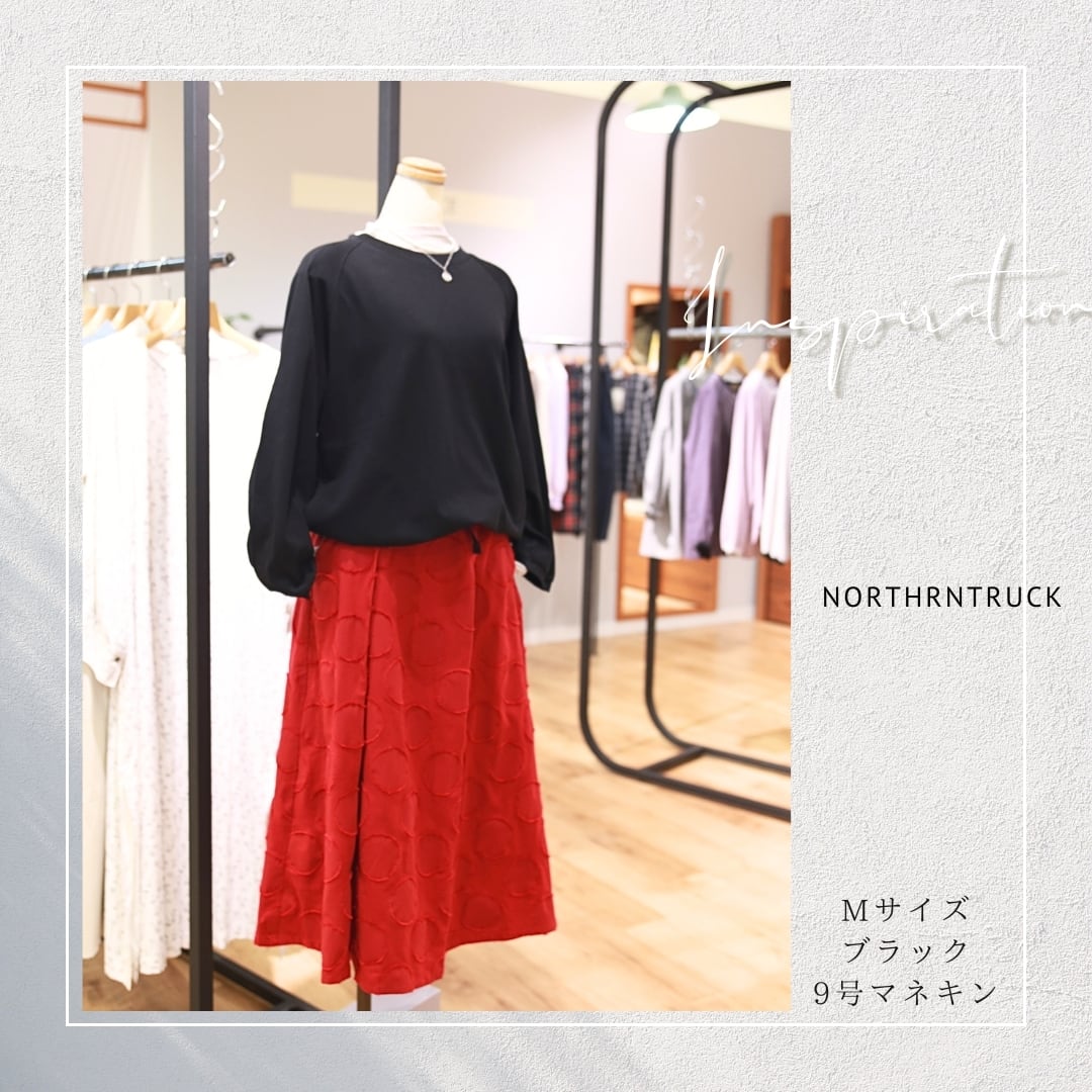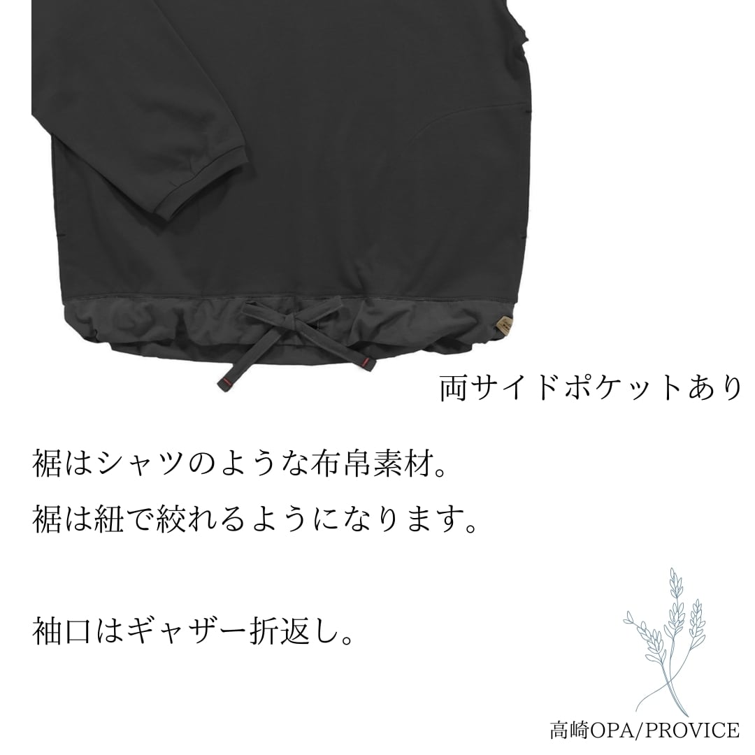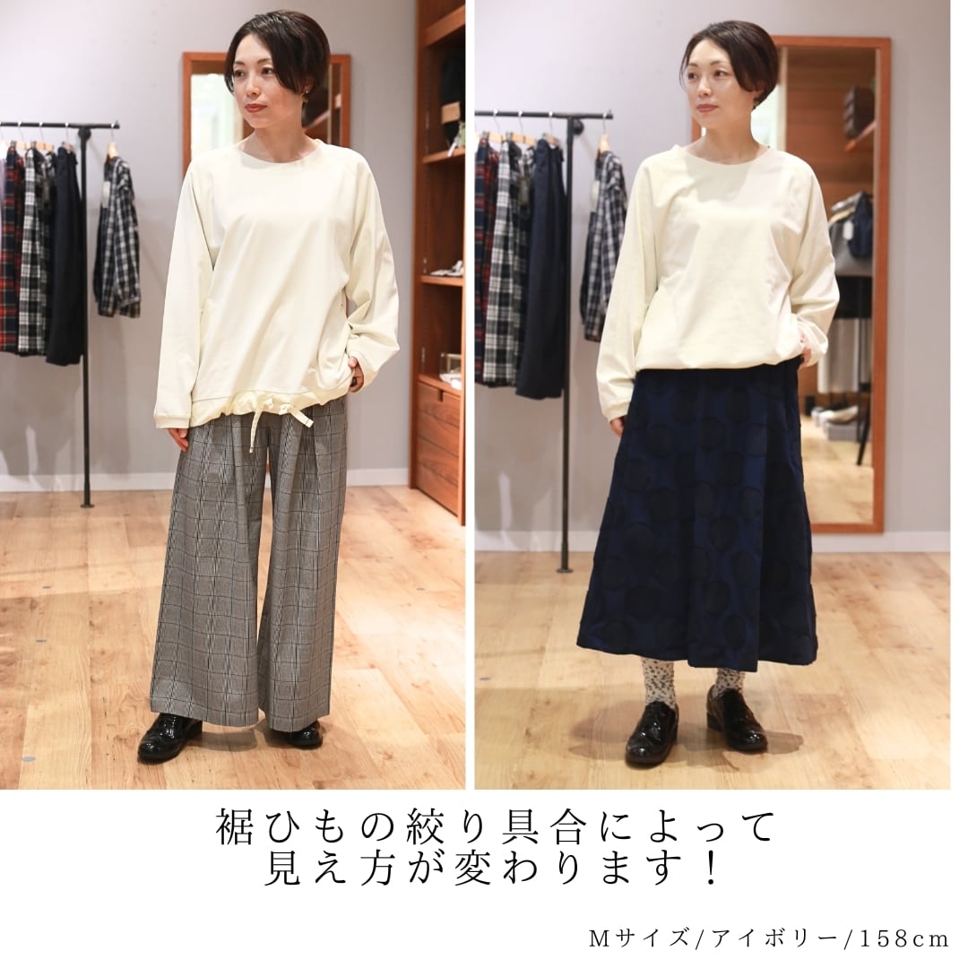 NORTHRN TRUCK/NGC35509/ノーザントラック/布帛づかいヘムギャザープルオーバー /長Tシャツ/長袖カットソー/バルーンすそ/春秋カットソー/長めの丈トップス/布帛切替え