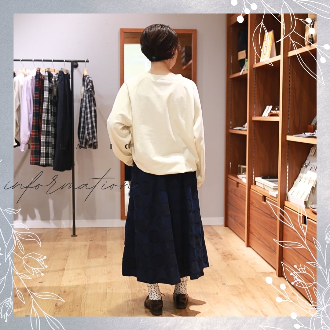 身頃はカットソー生地、裾はハリ感のある布帛生地を使用し、異素材の組み合わせがこなれた印象に。