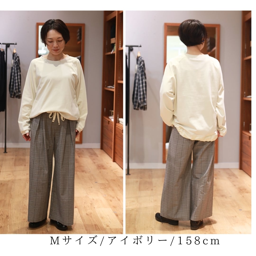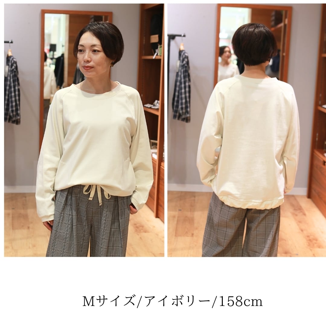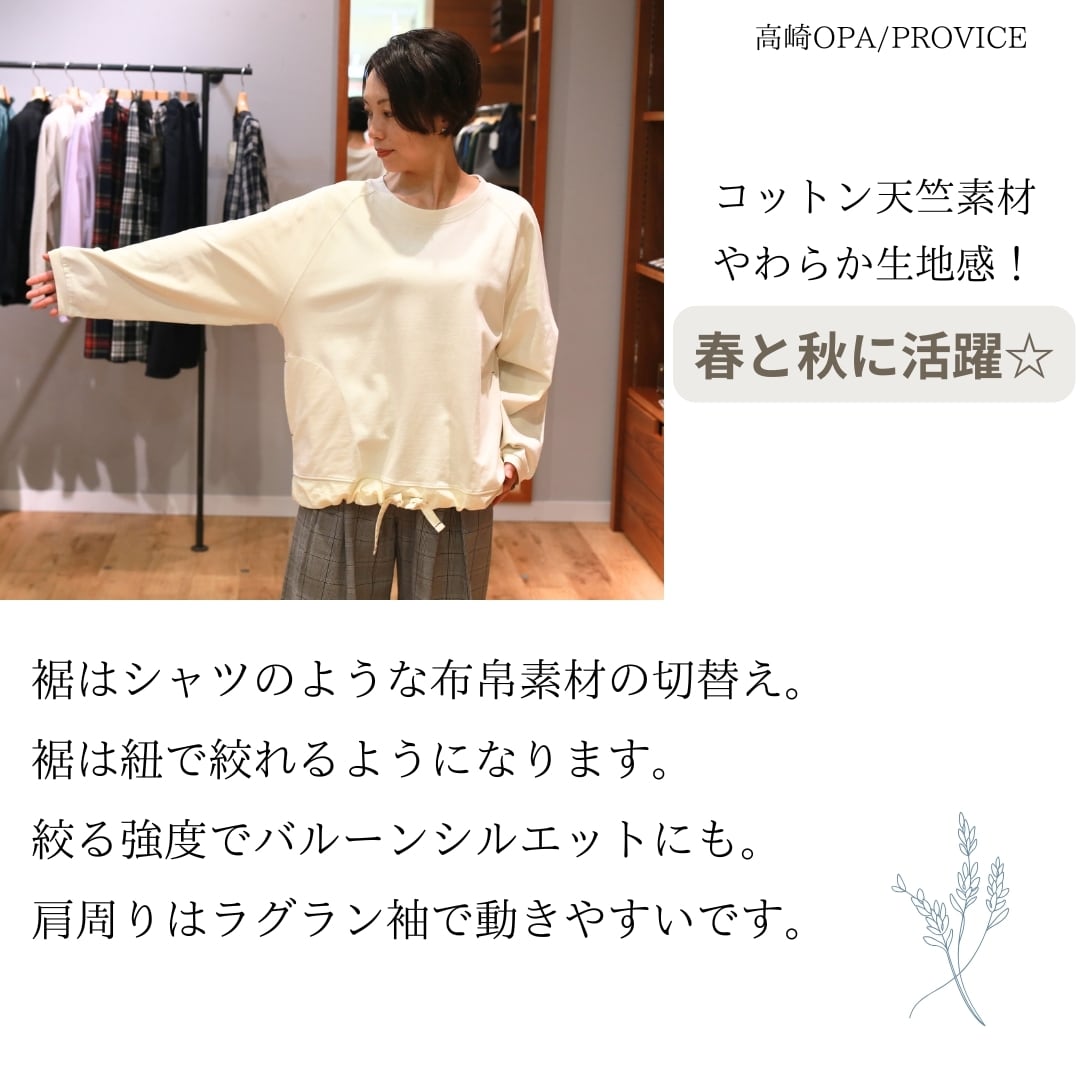 ラグランスリーブで肩まわりは動きやすく、袖口と裾のギャザーで程よいボリューム感をプラス。