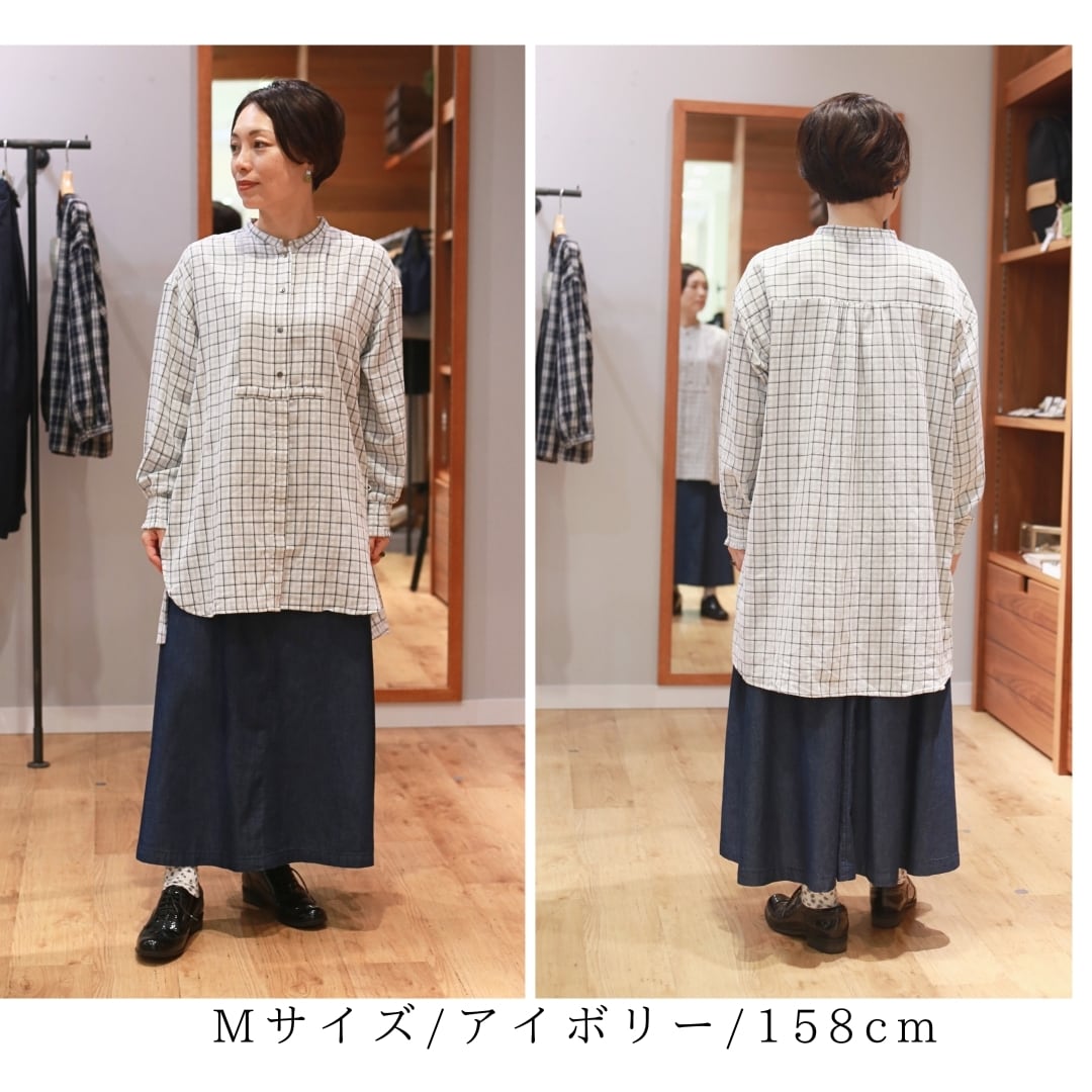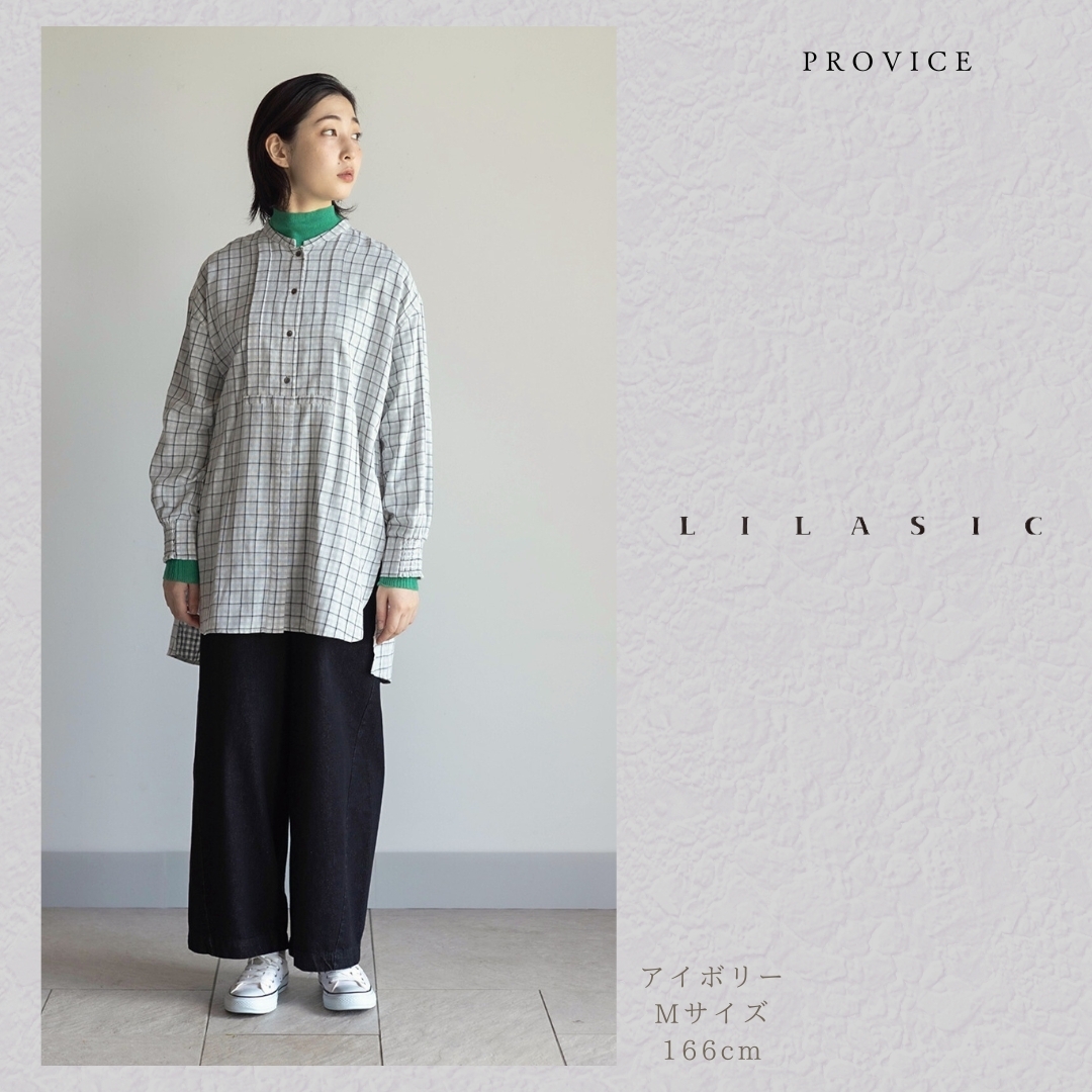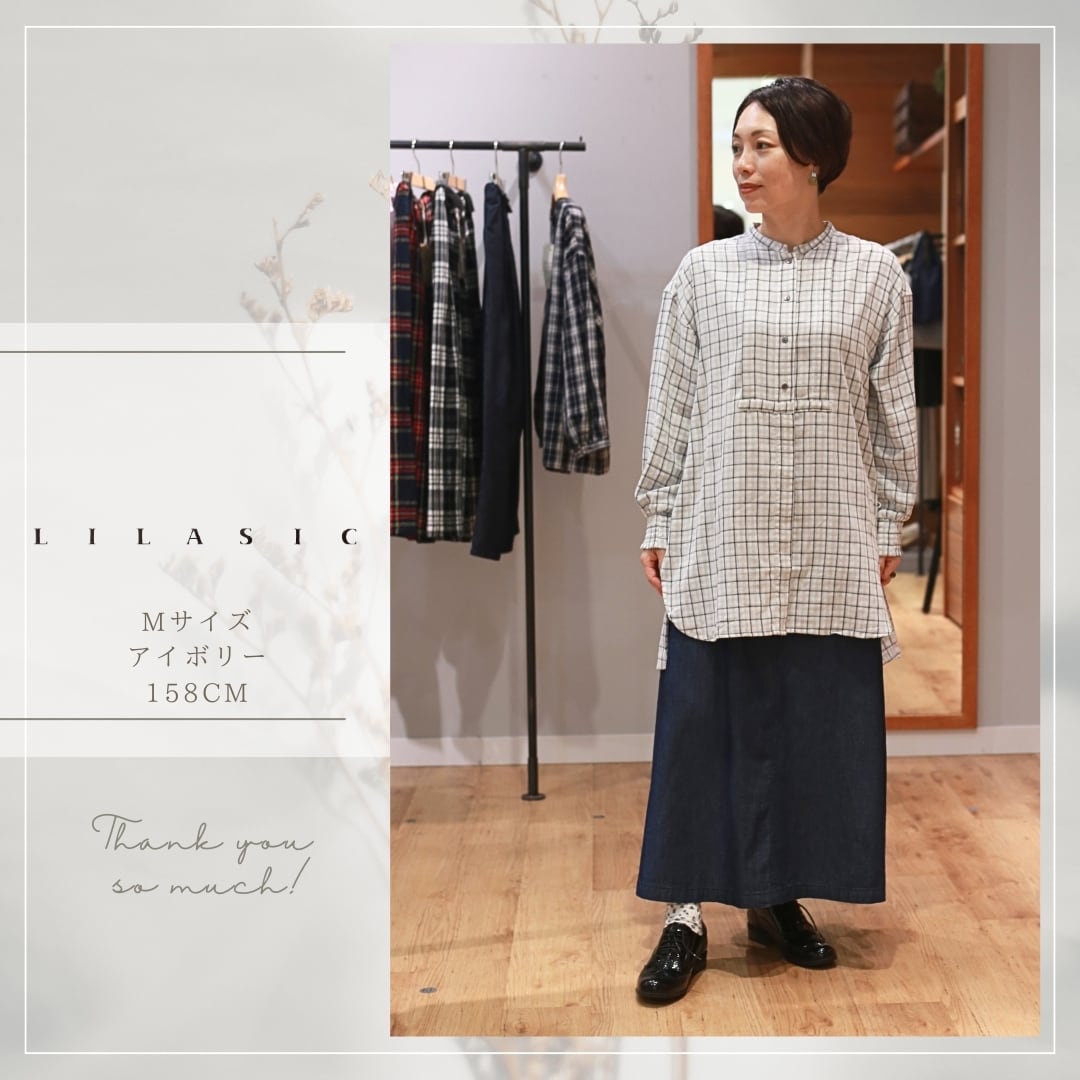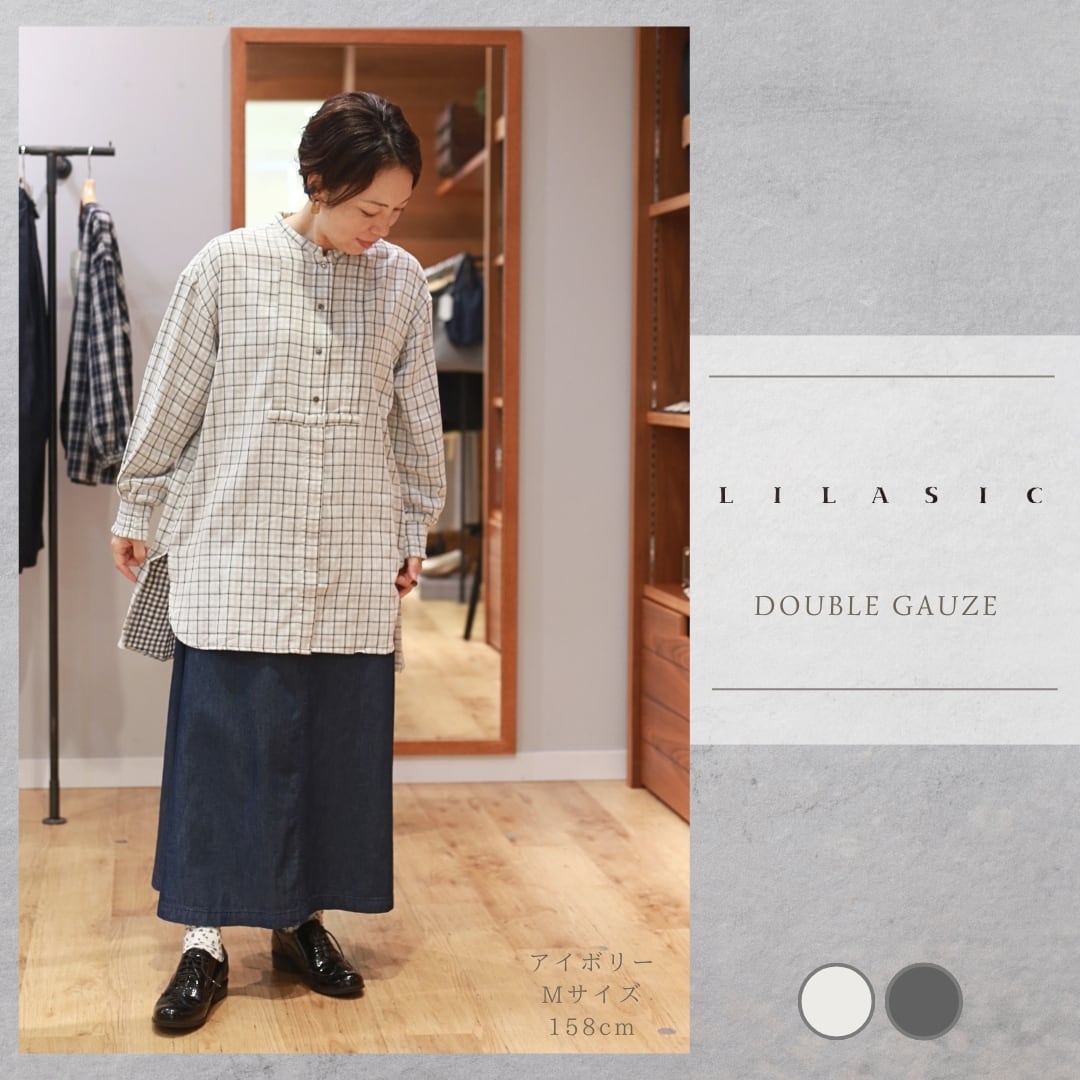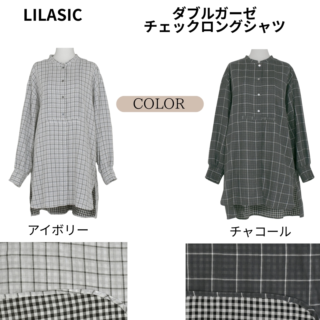 LILASIC/SGTD5475/リラシク/ダブルガーゼチェックロングシャツ /春秋ブラウス/チェック柄チュニック/ダブルガーゼシャツ/チェックシャツチュニック/2枚ガーゼ