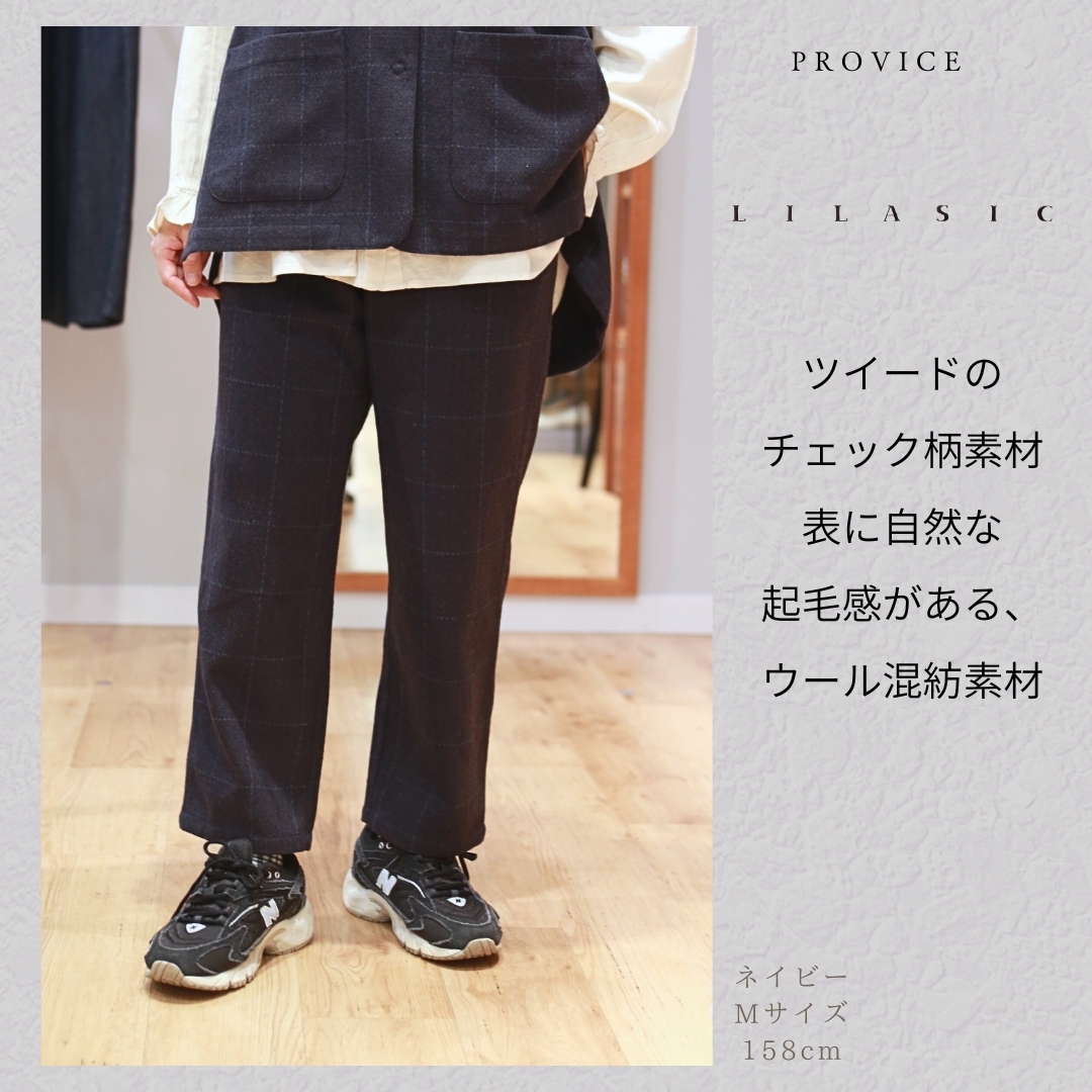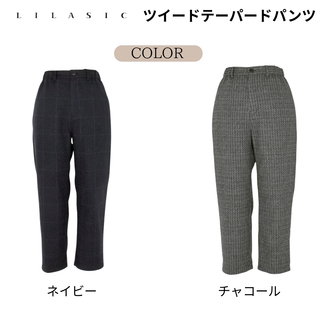 LILASIC/ SGJJ5469/リラシク/ツイードテーパードパンツ/秋テーパードパンツ/ツイード素材/チェックパンツ/シャドーチェック/秋冬パンツ