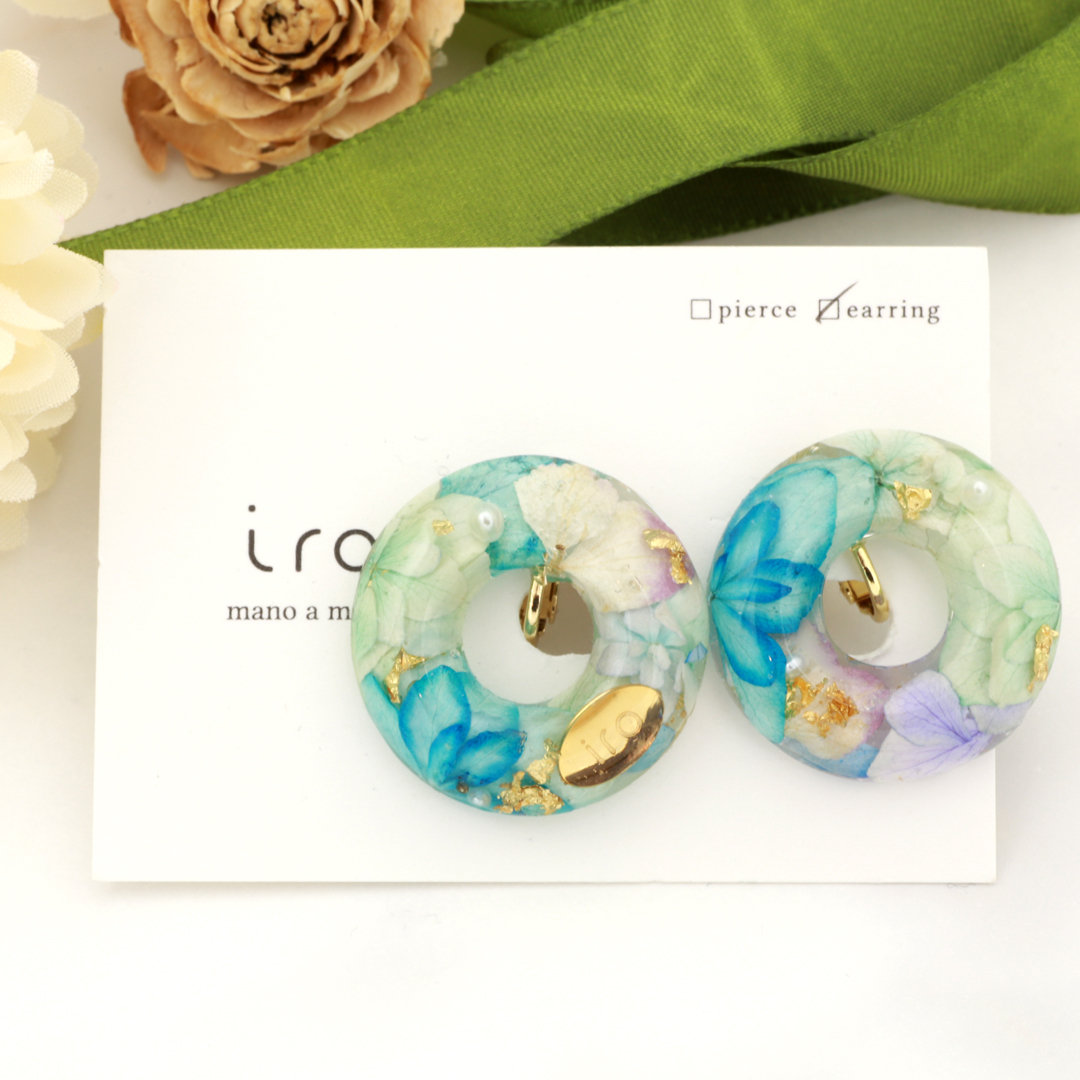 iro64イロ/ドーナツ/水色あじさい/イヤリング