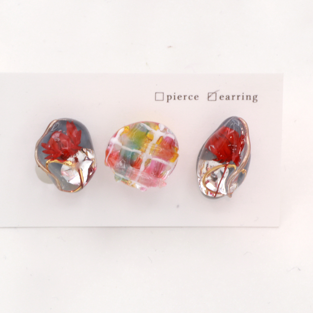 一点物の耳飾りの中から、ご自分にあった色のアクセサリーをお選び頂けると幸いです。