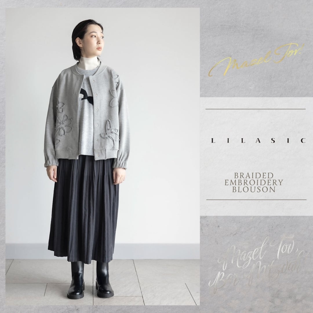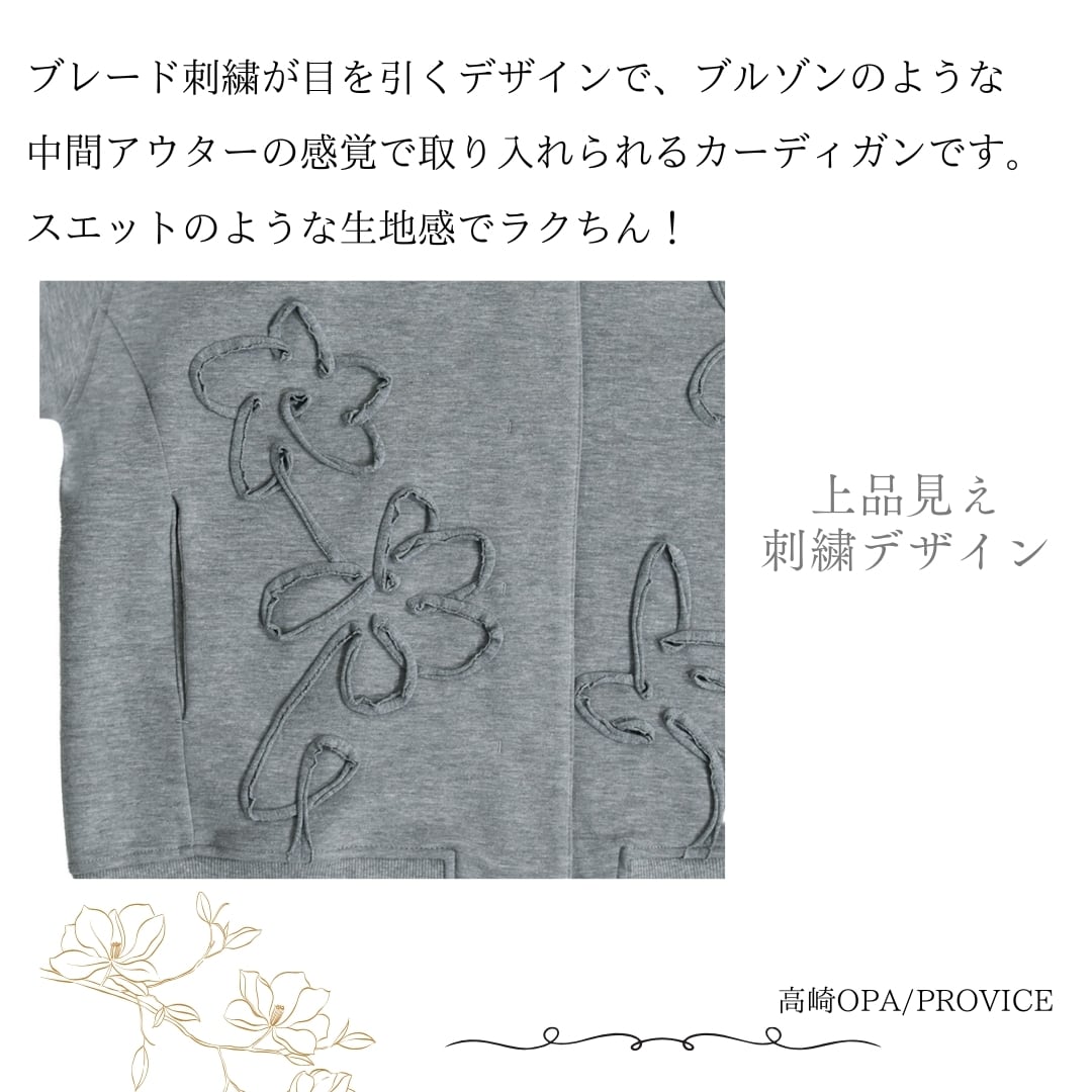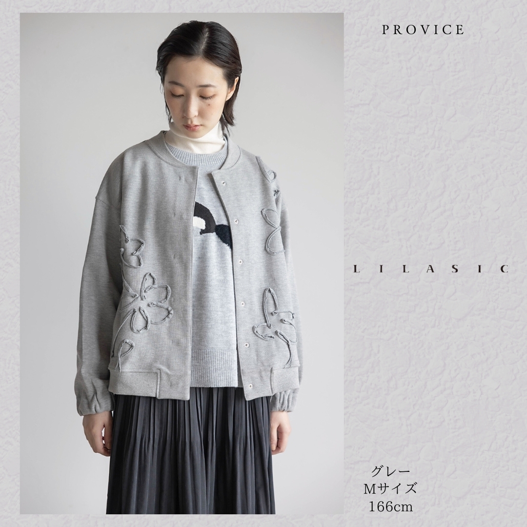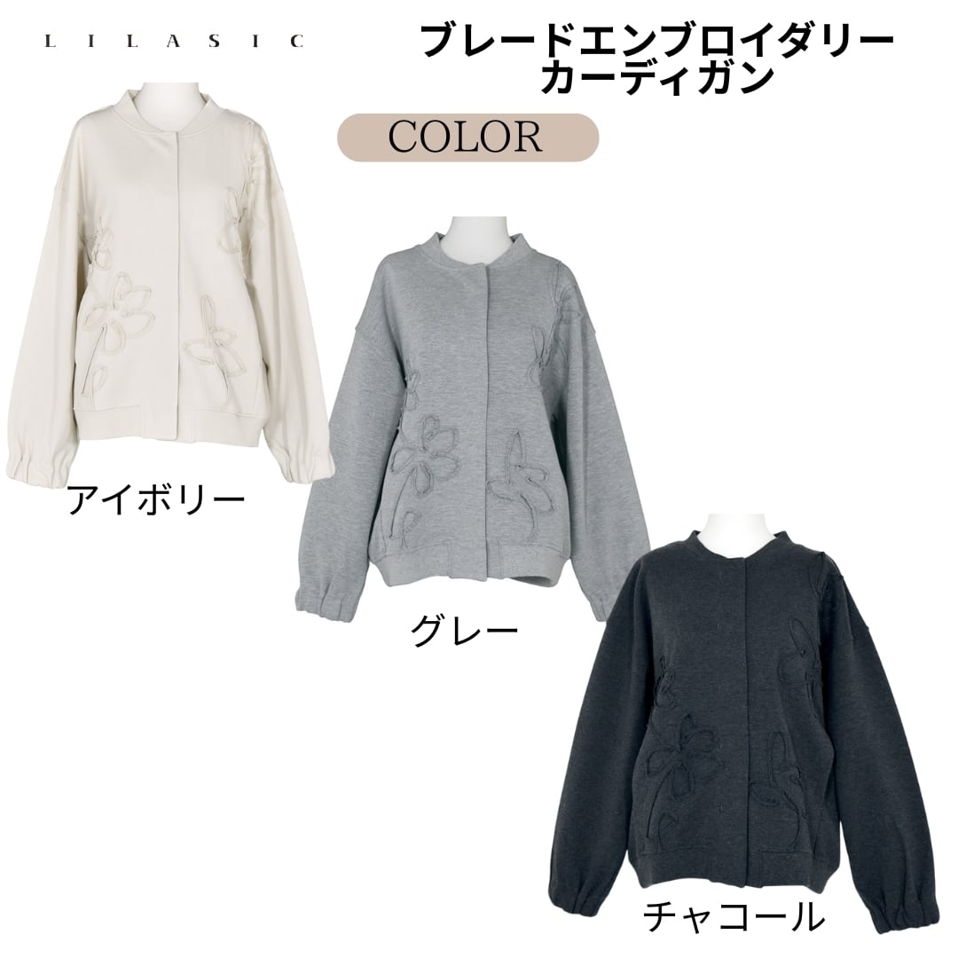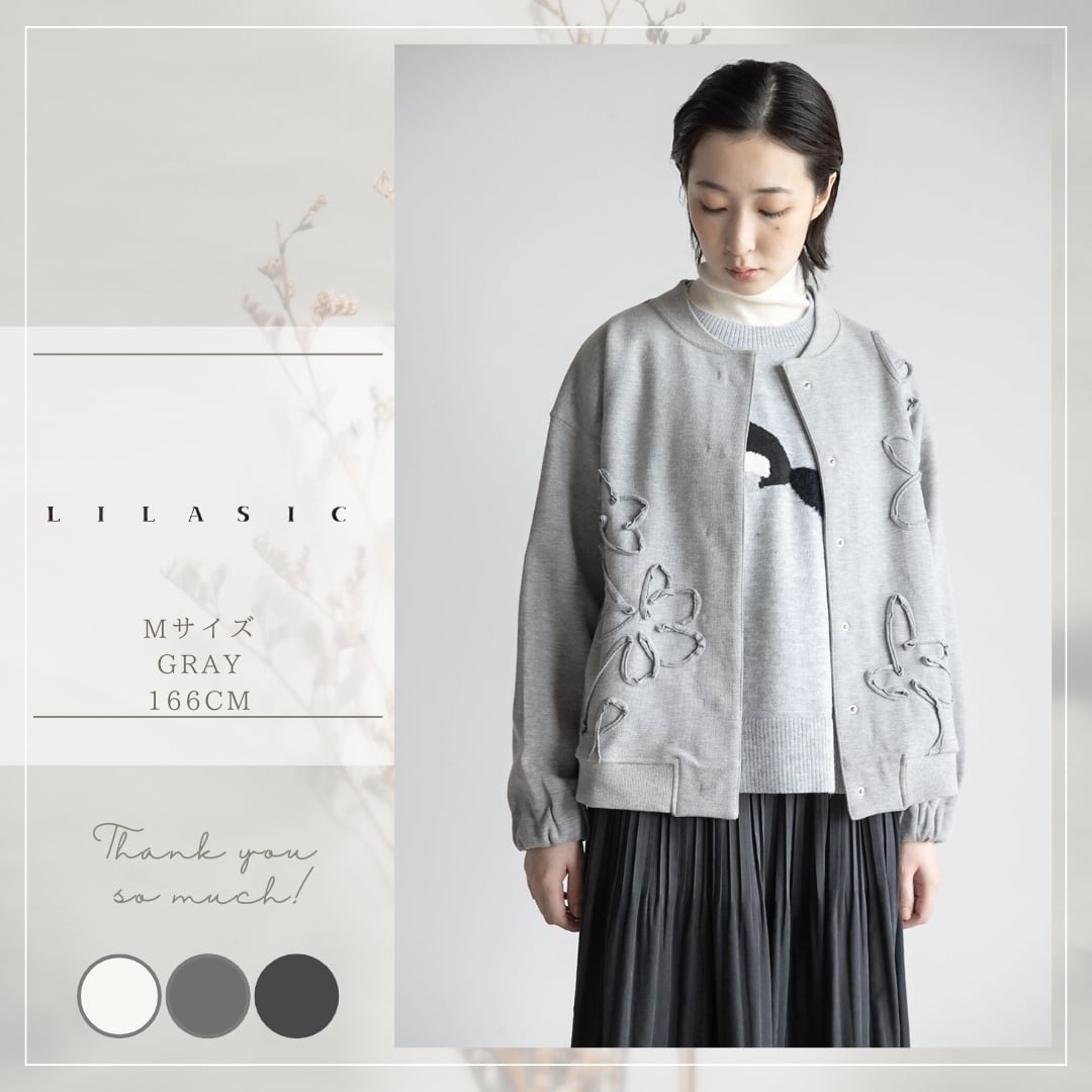 LILASIC/SHHW5534/リラシク/ブレードエンブロイダリーカーディガン/スエットカーデ/スエットブルゾン/刺繍スエット/ライトアウター/ブレード刺繍