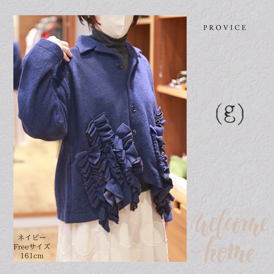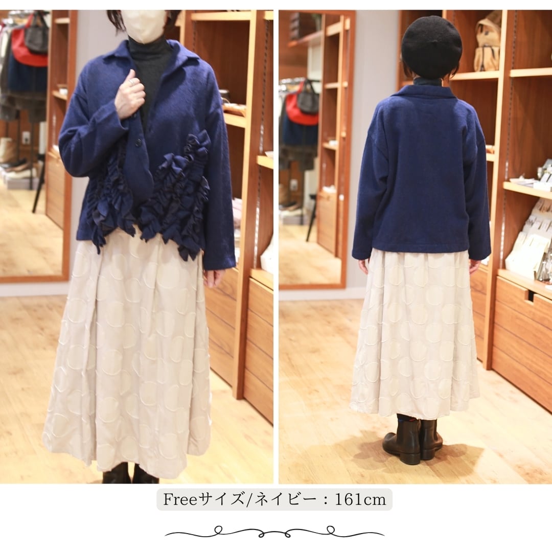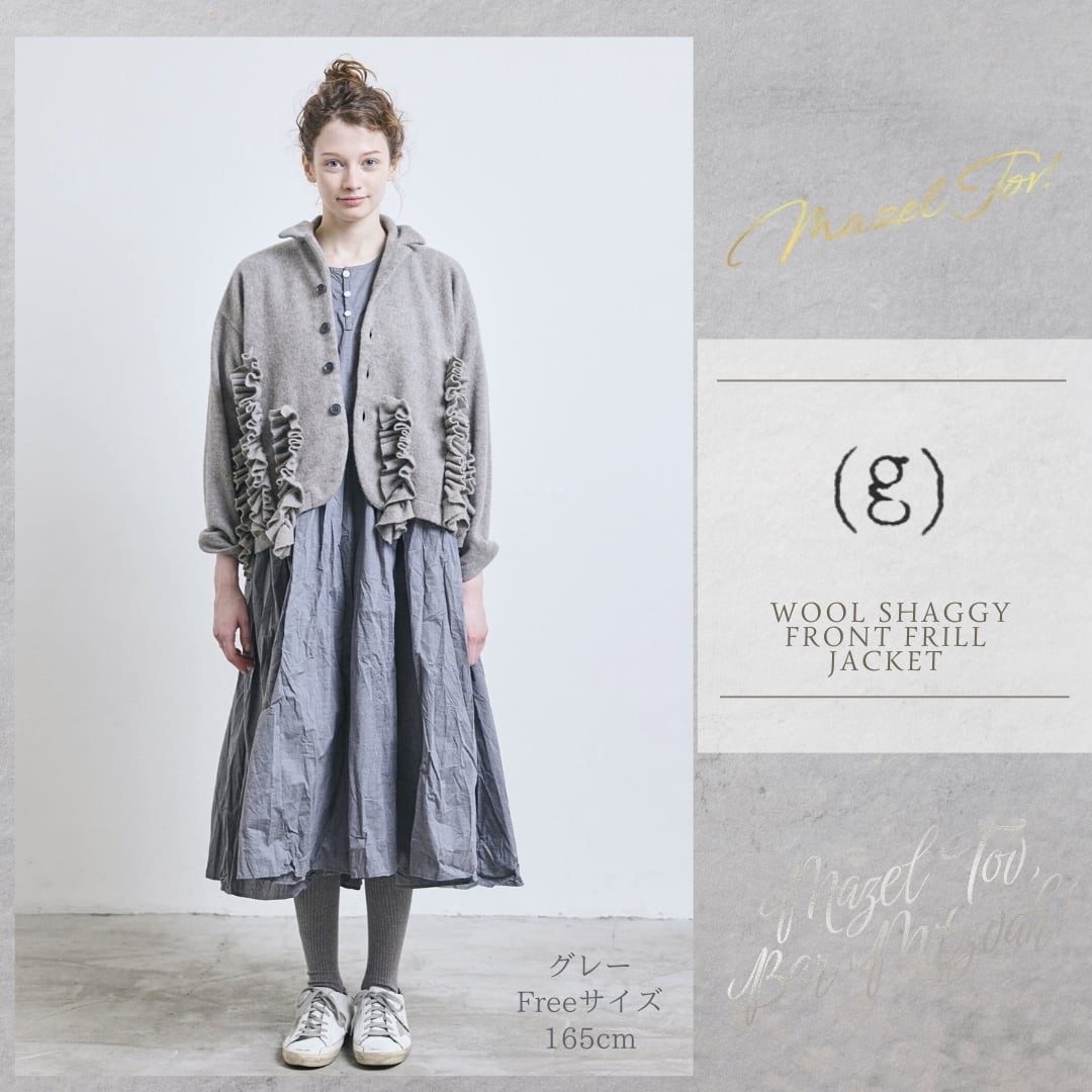 「g625」(g)グラム服/ウールシャギーフロントフリルジャケット/ WOOL SHAGGY FRONT FRILL JACKET/ウールシャギーブルゾン/秋冬羽織り/フリル装飾/フリル羽織り/トップスアウター/ウールカーデ