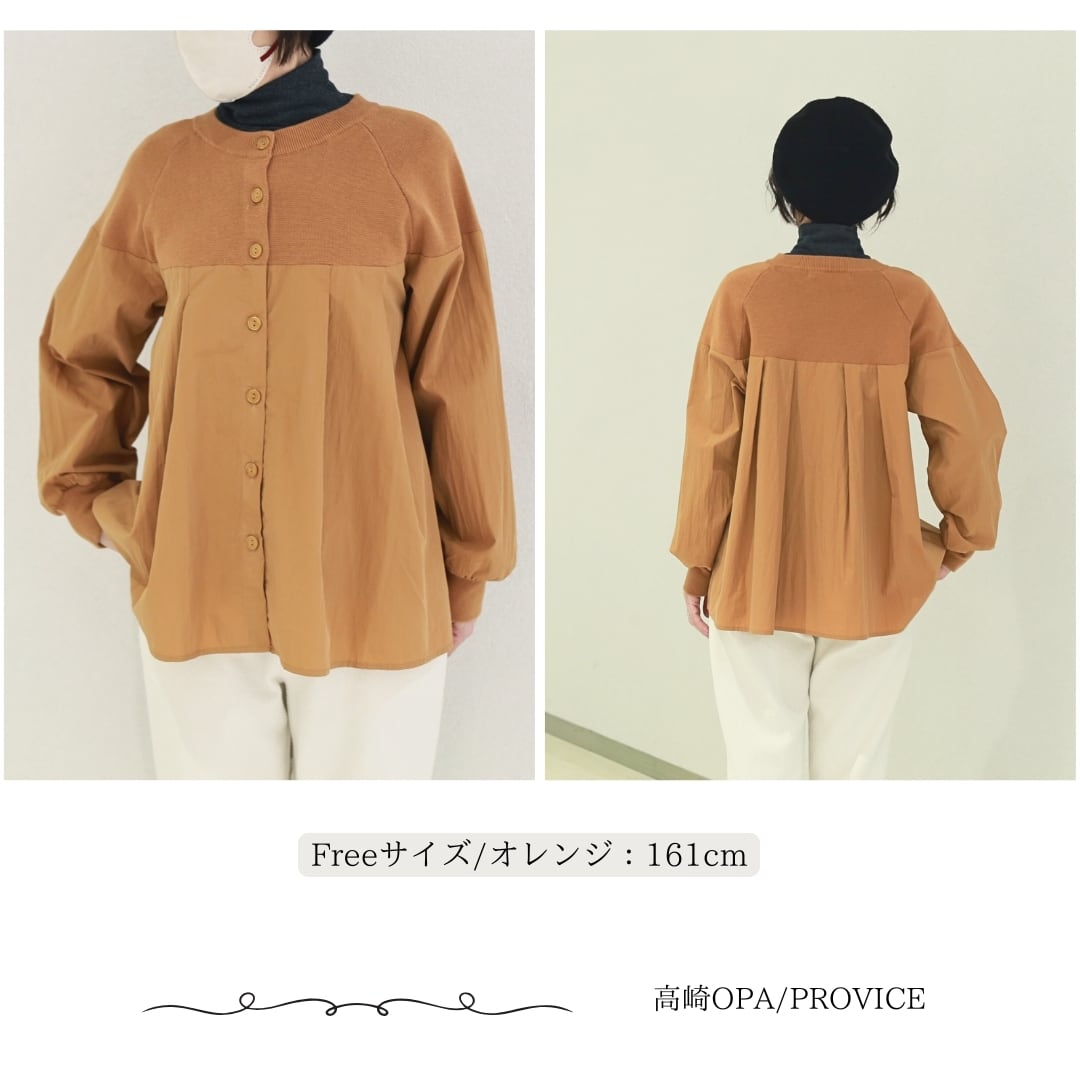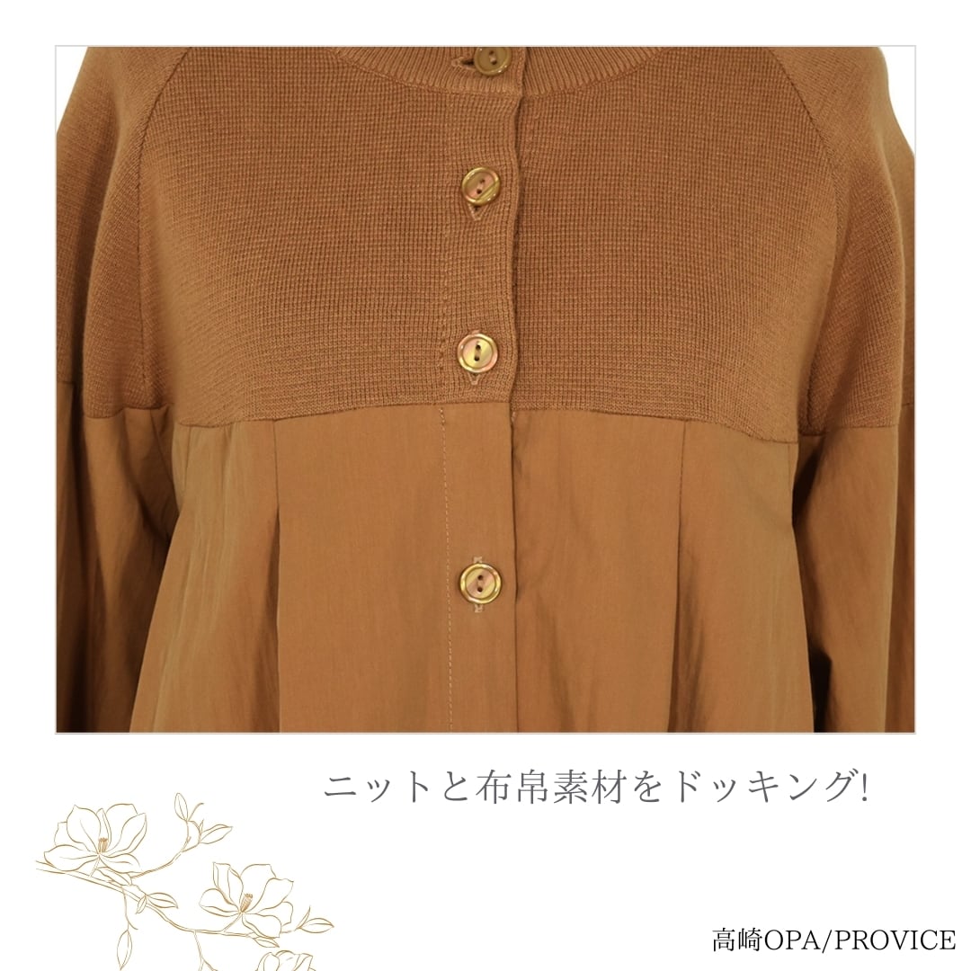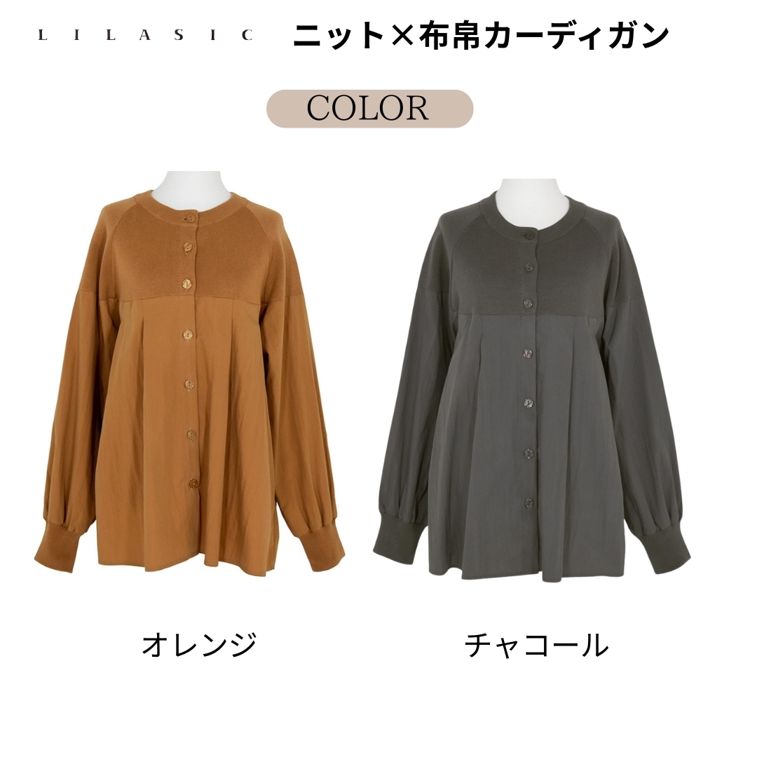 LILASIC/SHH95547/リラシク/ニット×布帛カーディガン/異素材ブラウス/切替えカーディガン/ニットシャツ/秋冬カーディガン/長袖切替ブラウス