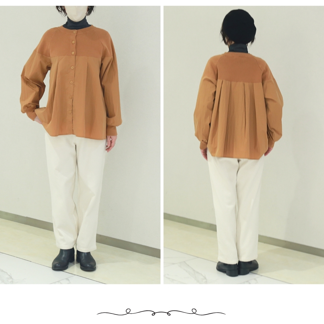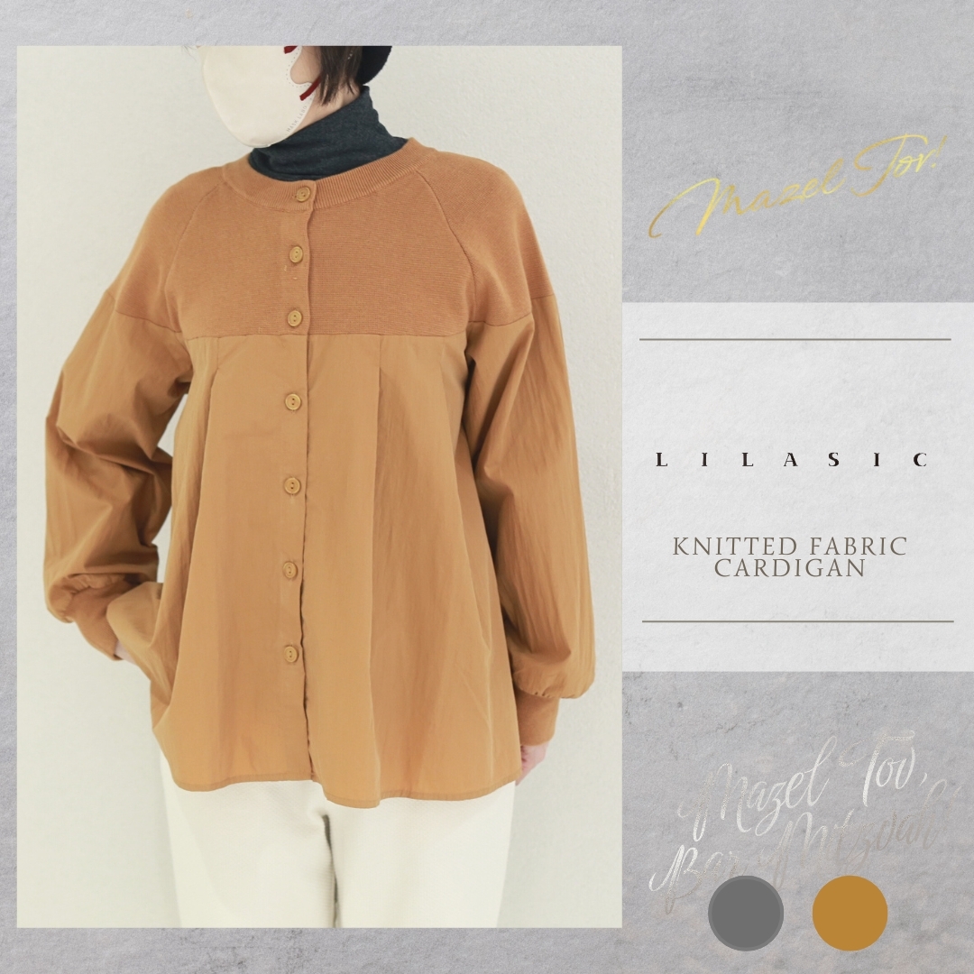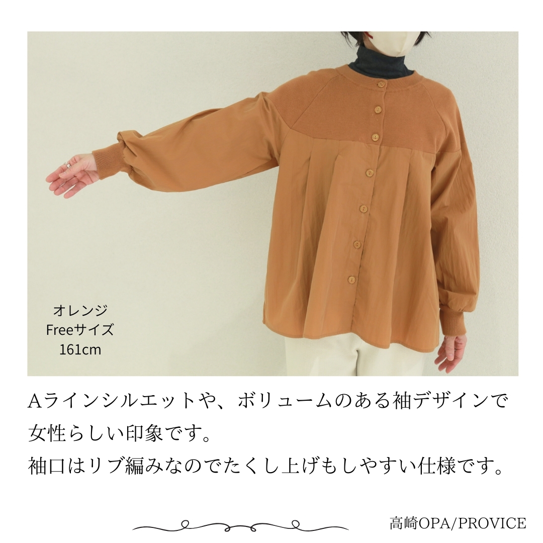 LILASIC/SHH95547/リラシク/ニット×布帛カーディガン/異素材ブラウス/切替えカーディガン/ニットシャツ/秋冬カーディガン/長袖切替ブラウス
