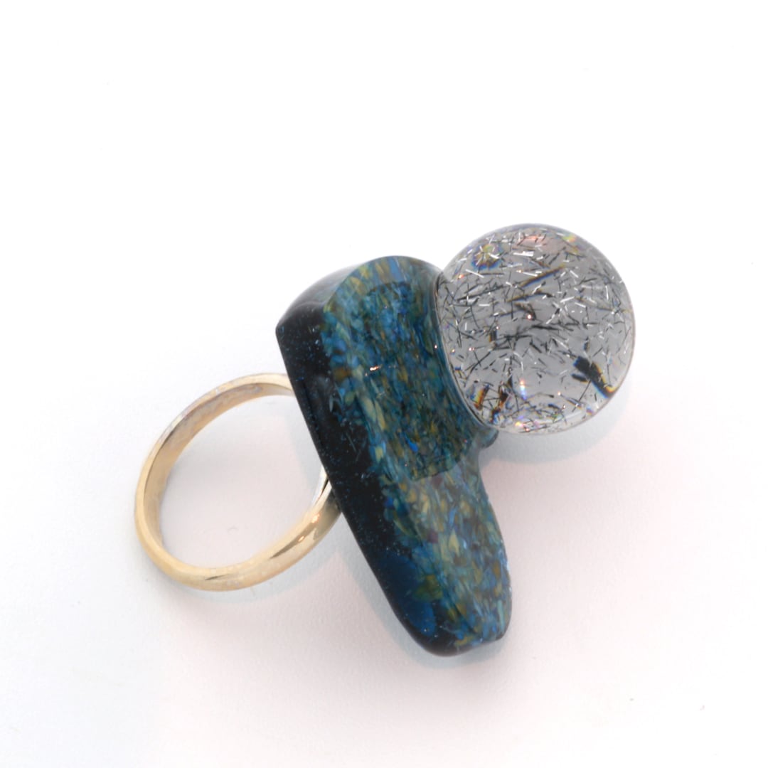 金属、石、ガラス、ビーズなど様々な粒が織り成す