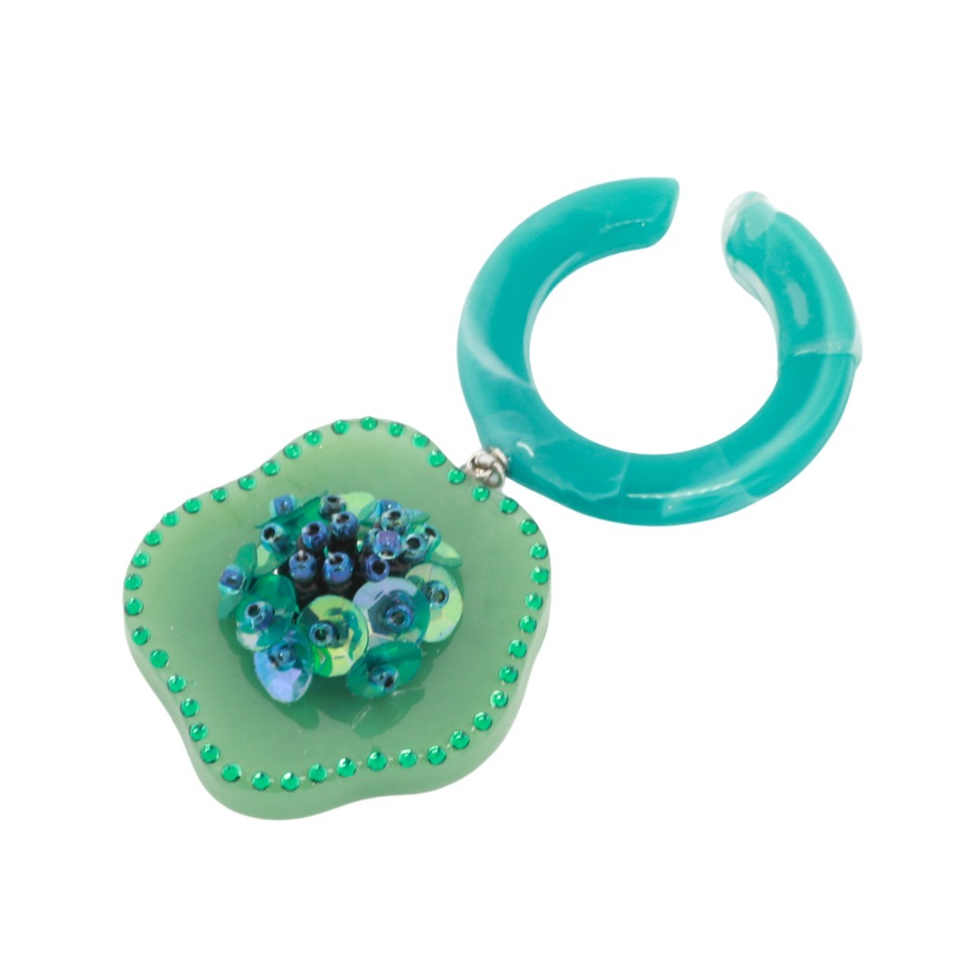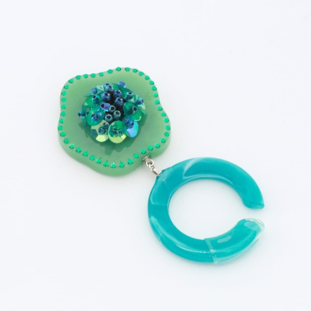 金属、石、ガラス、ビーズなど様々な粒が織り成す