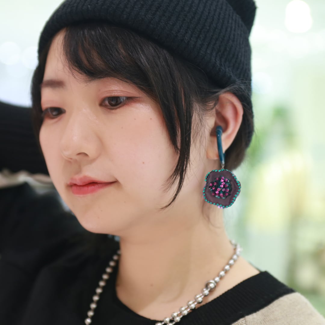 金属、石、ガラス、ビーズなど様々な粒が織り成す