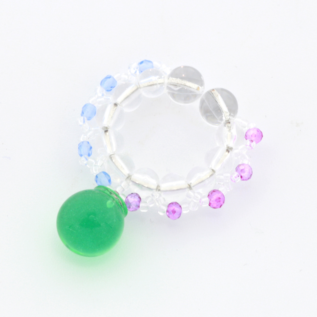 金属、石、ガラス、ビーズなど様々な粒が織り成す