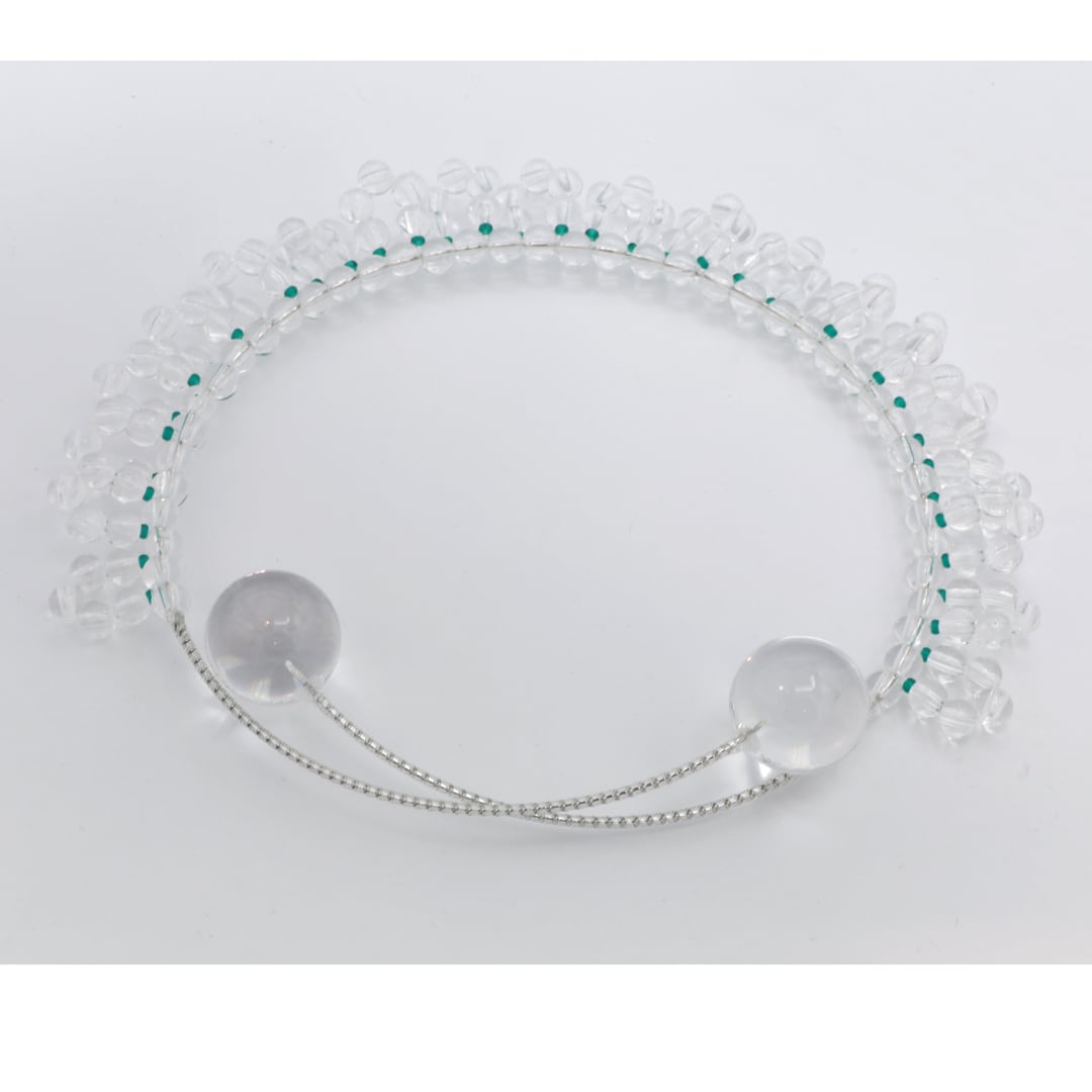 金属、石、ガラス、ビーズなど様々な粒が織り成す