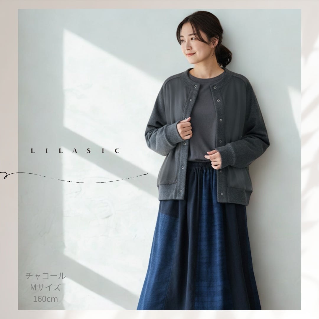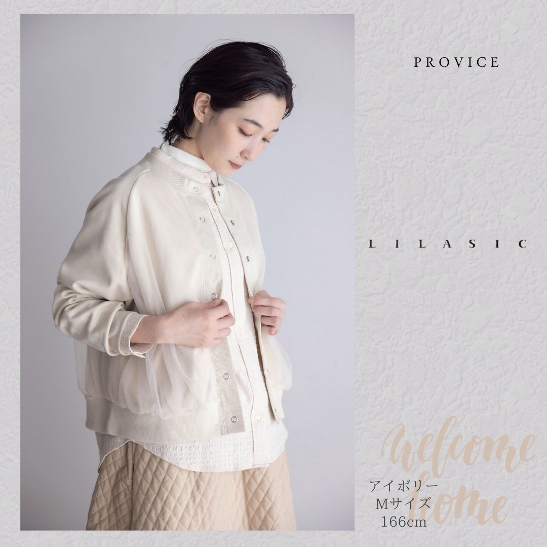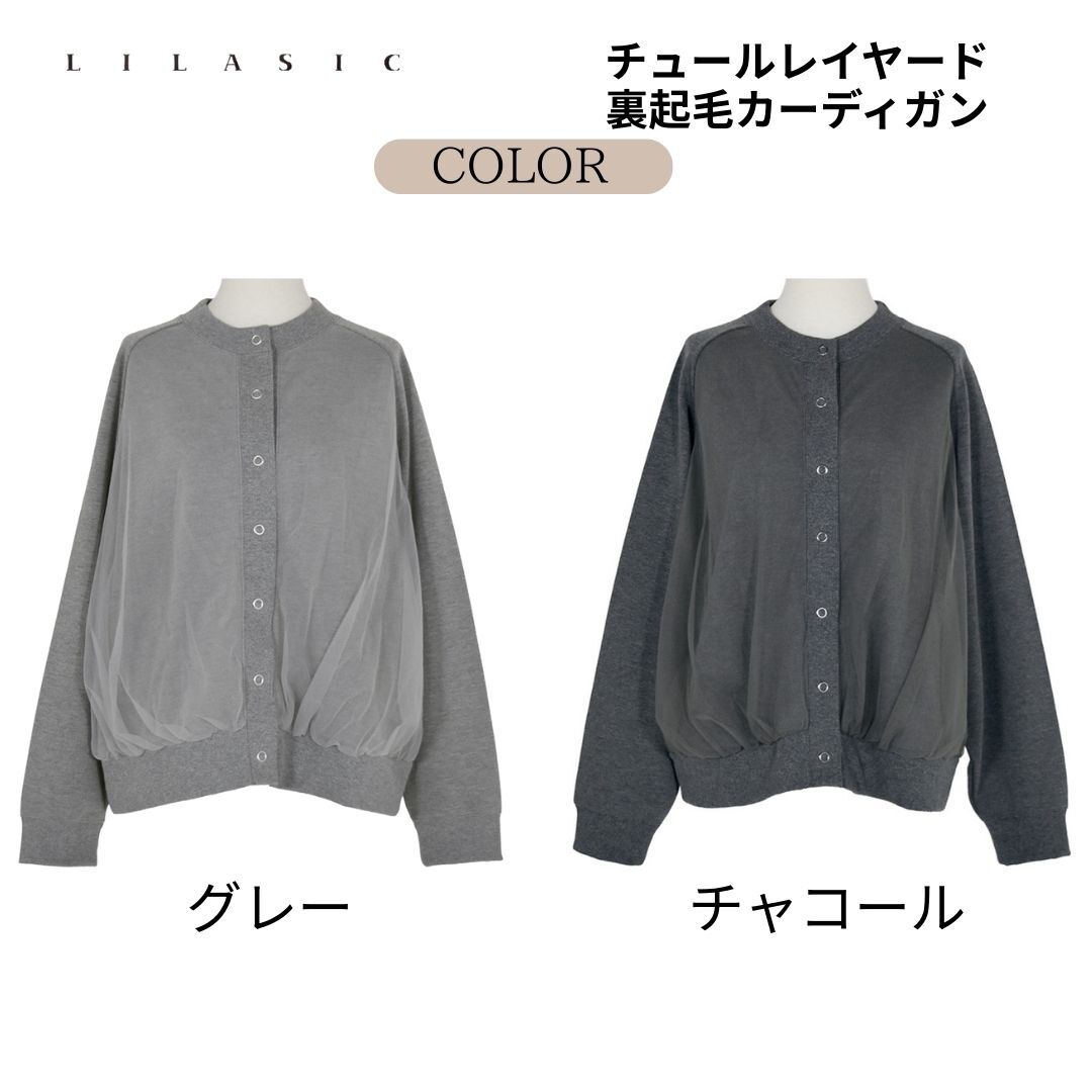 LILASIC/SKHW5642/リラシク/チュールレイヤード裏起毛カーディガン/スエットチュール素材/チュールブルゾン/裏毛カーデ/チュールカーディガン