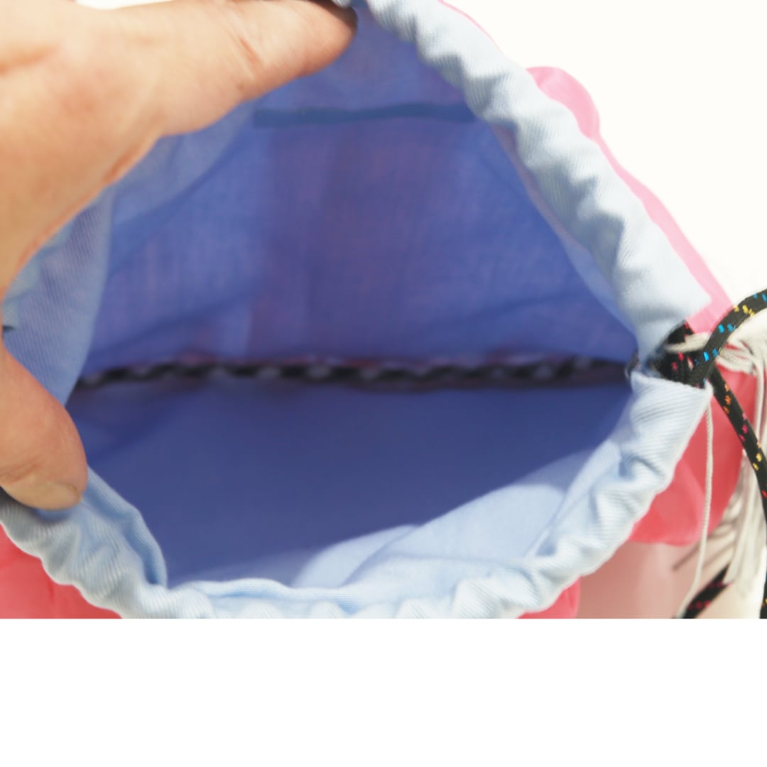 ●サイズ:横上部17cm、横下部19.5cm、高さ20cm、巾着ひも最大55cm