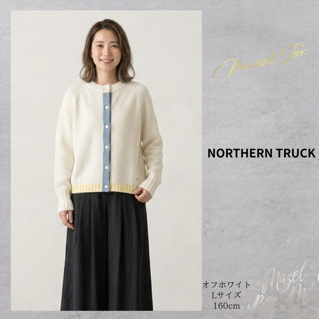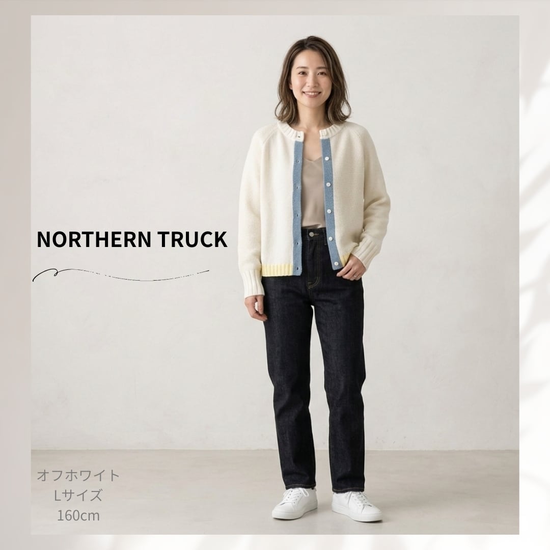 NORTHERN TRUCK/NJHC5696/パッチワーク風配色ポイントカーディガン/ニットカーデ/配色カーディガン/切替ニット/レアデザインニット