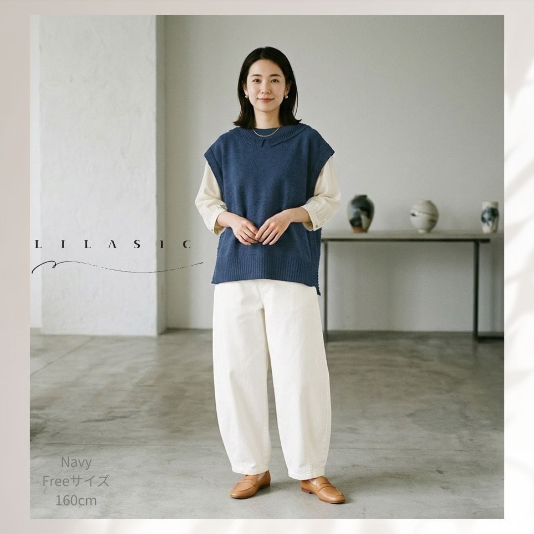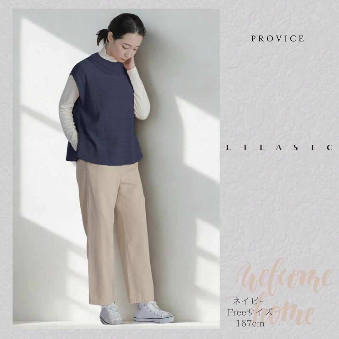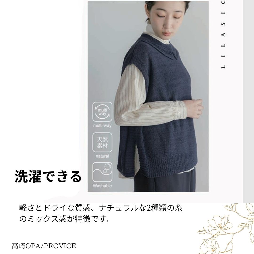 LILASIC/SASE6006/リラシク/ミックスヤーンベスト/ニットベスト/ミドルゲージニット/洗えるニット/軽いニットベスト/春秋ニット