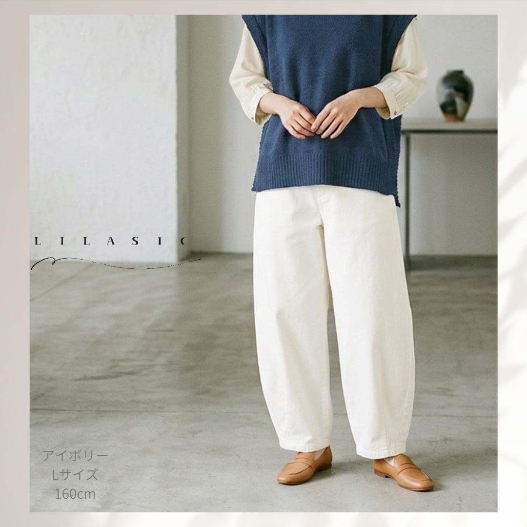 LILASIC/SAB36019/リラシク/コットンデニムバレルパンツ/コットンデニム/白デニム/バレルパンツ/バレルデニム/ワイドデニム