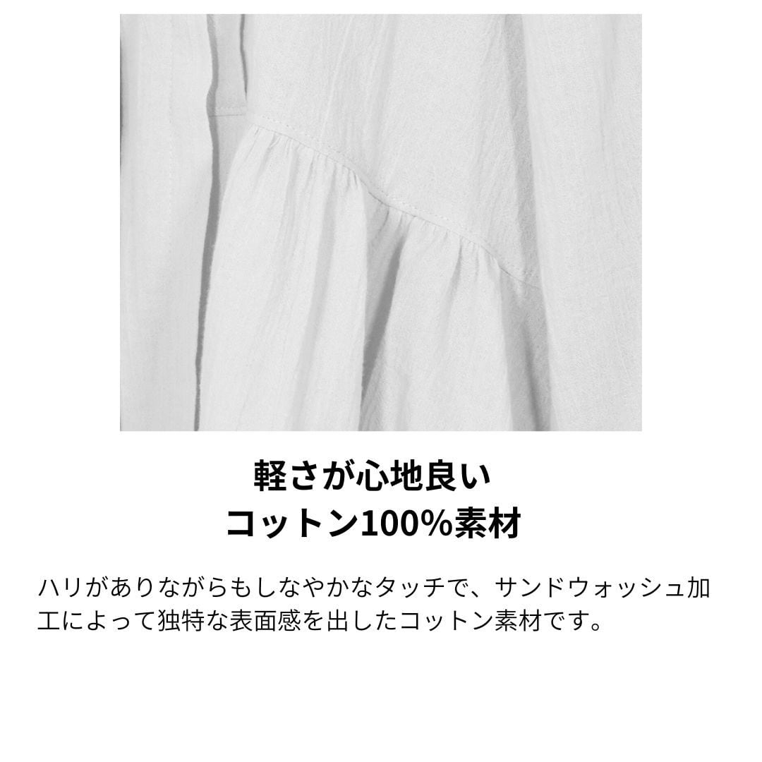 ハリがありながらもしなやかなタッチで、サンドウォッシュ加工によって独特な表面感を出したコットン素材。