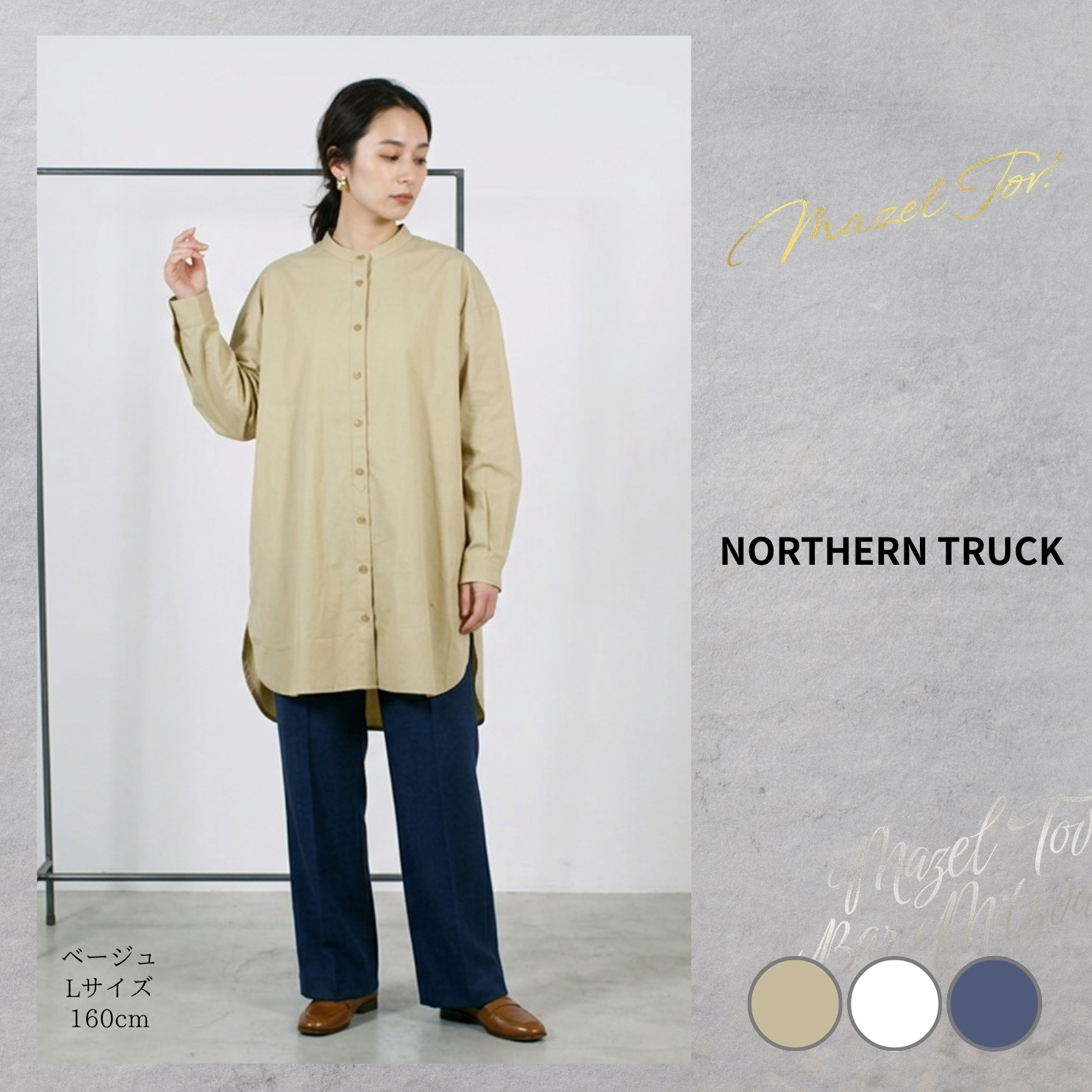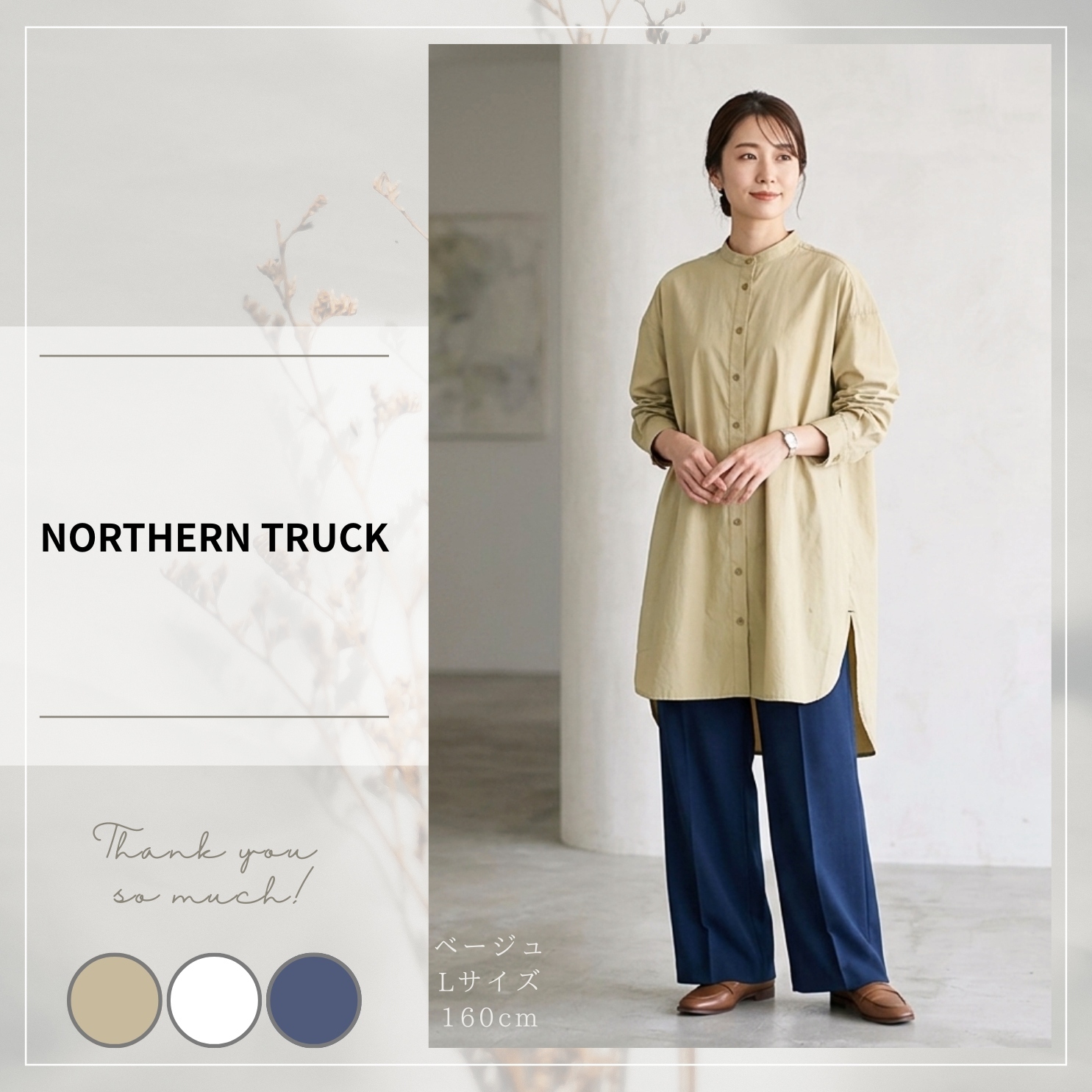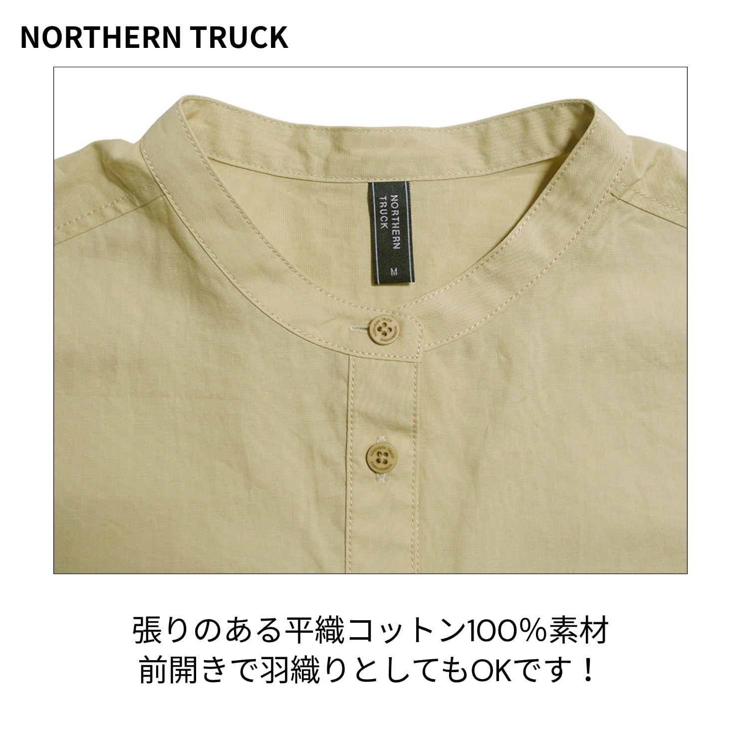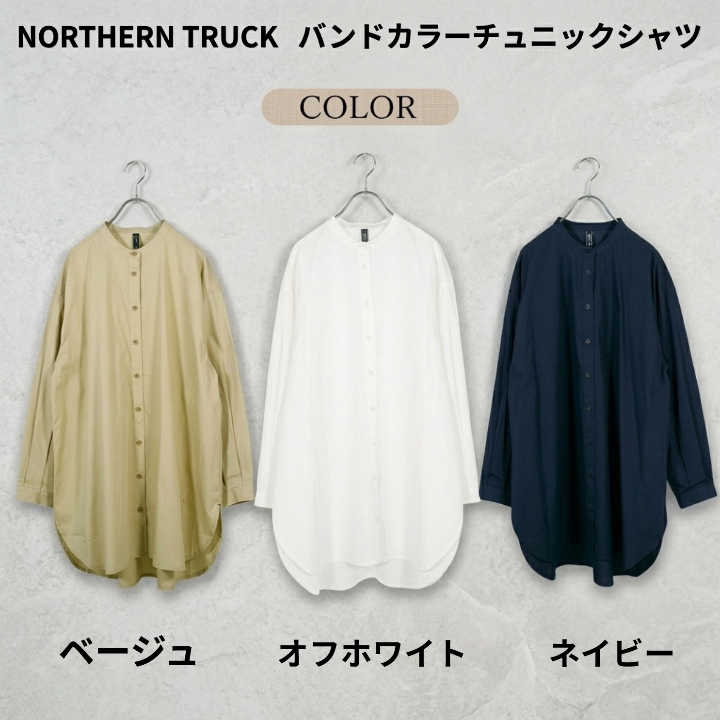 NORTHERN TRUCK/NATS6079/バンドカラーチュニックシャツ/チュニック丈/春秋チュニックシャツ/羽織りシャツ