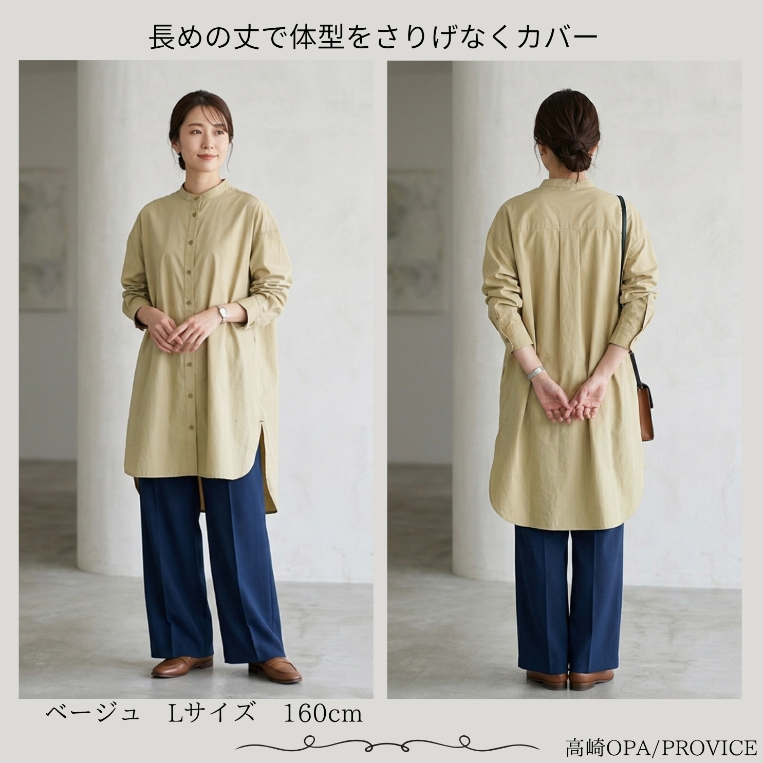 160cm:ベージュ、Lサイズ着用