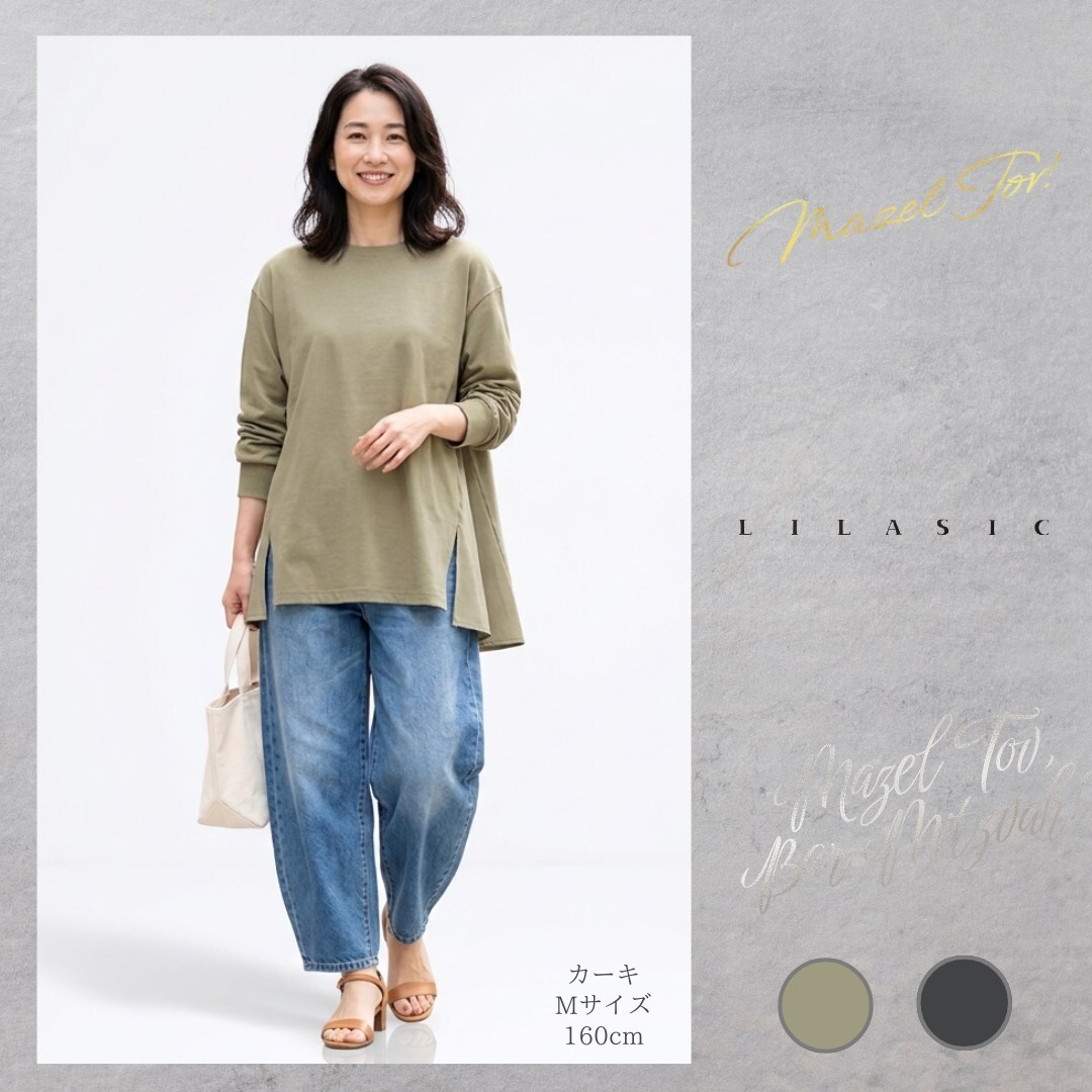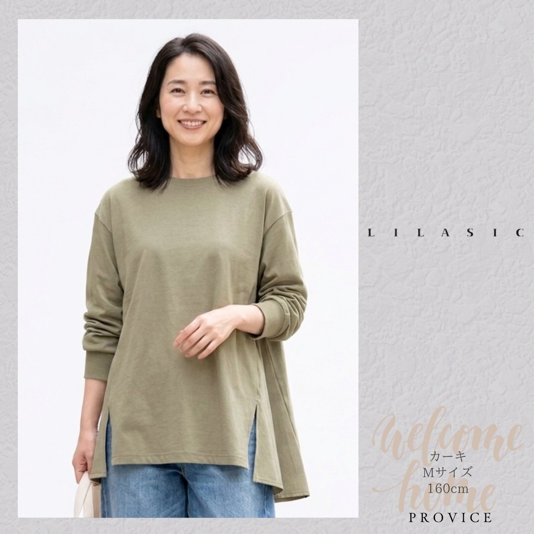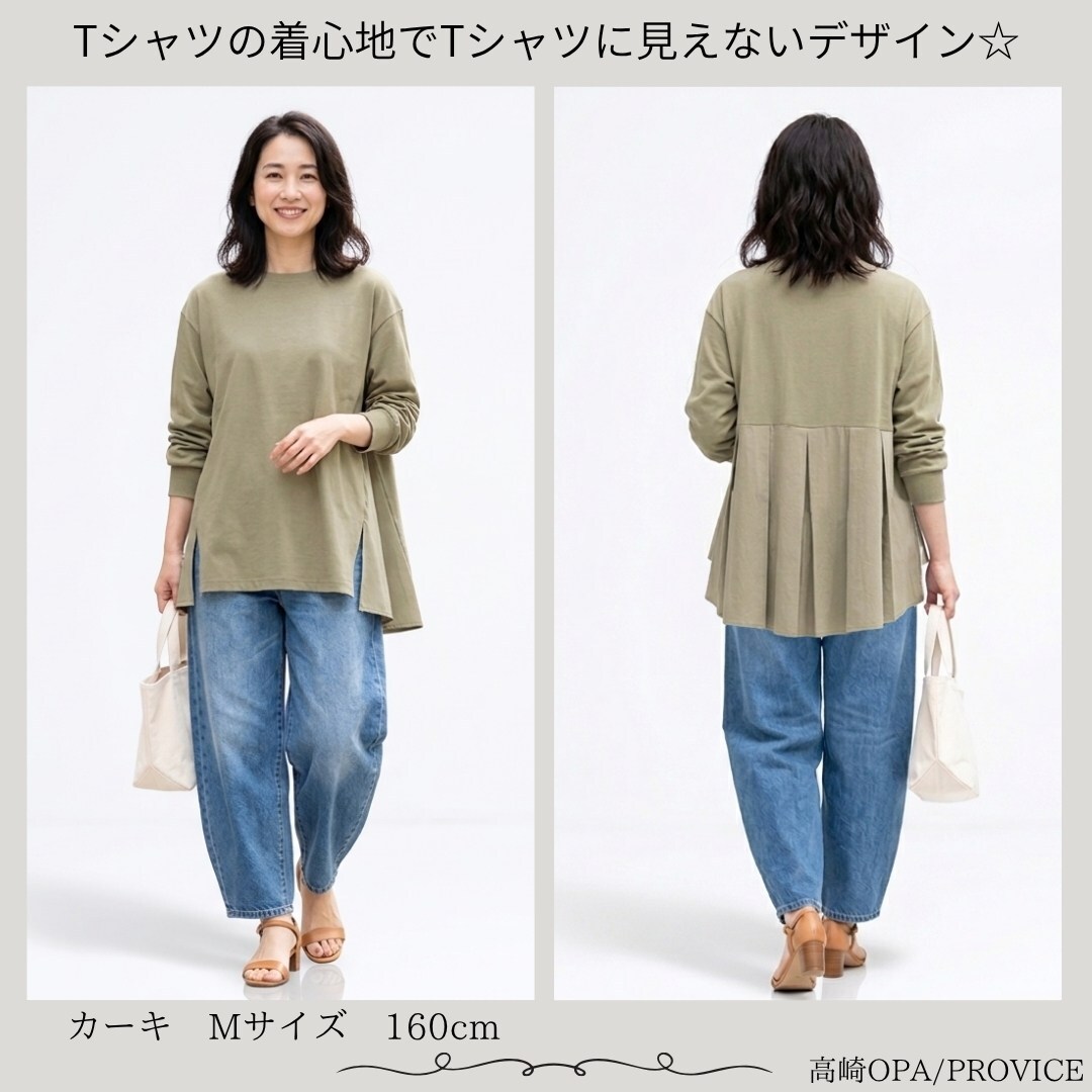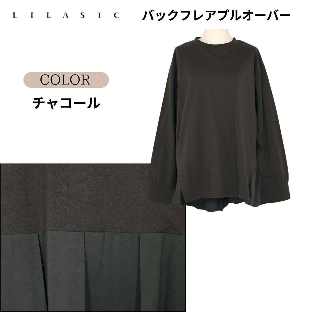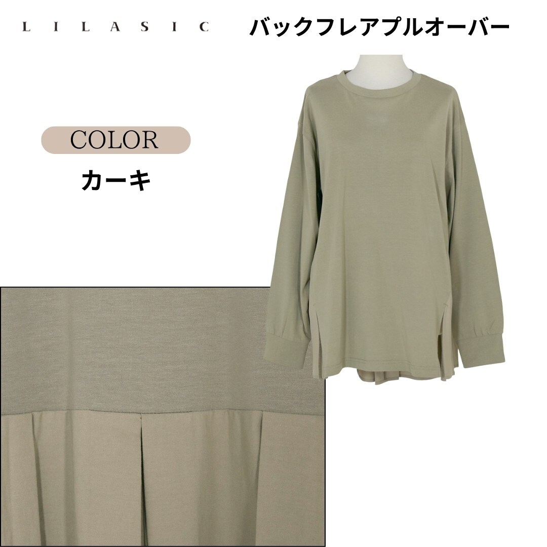 LILASIC/SBC36034/リラシク/バックフレアプルオーバー/ペプラムトップス/春夏フレアトップス/切替えTシャツ/綿100Tシャツ/フレア長T
