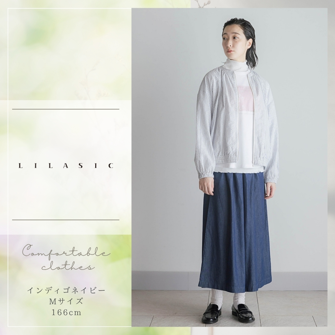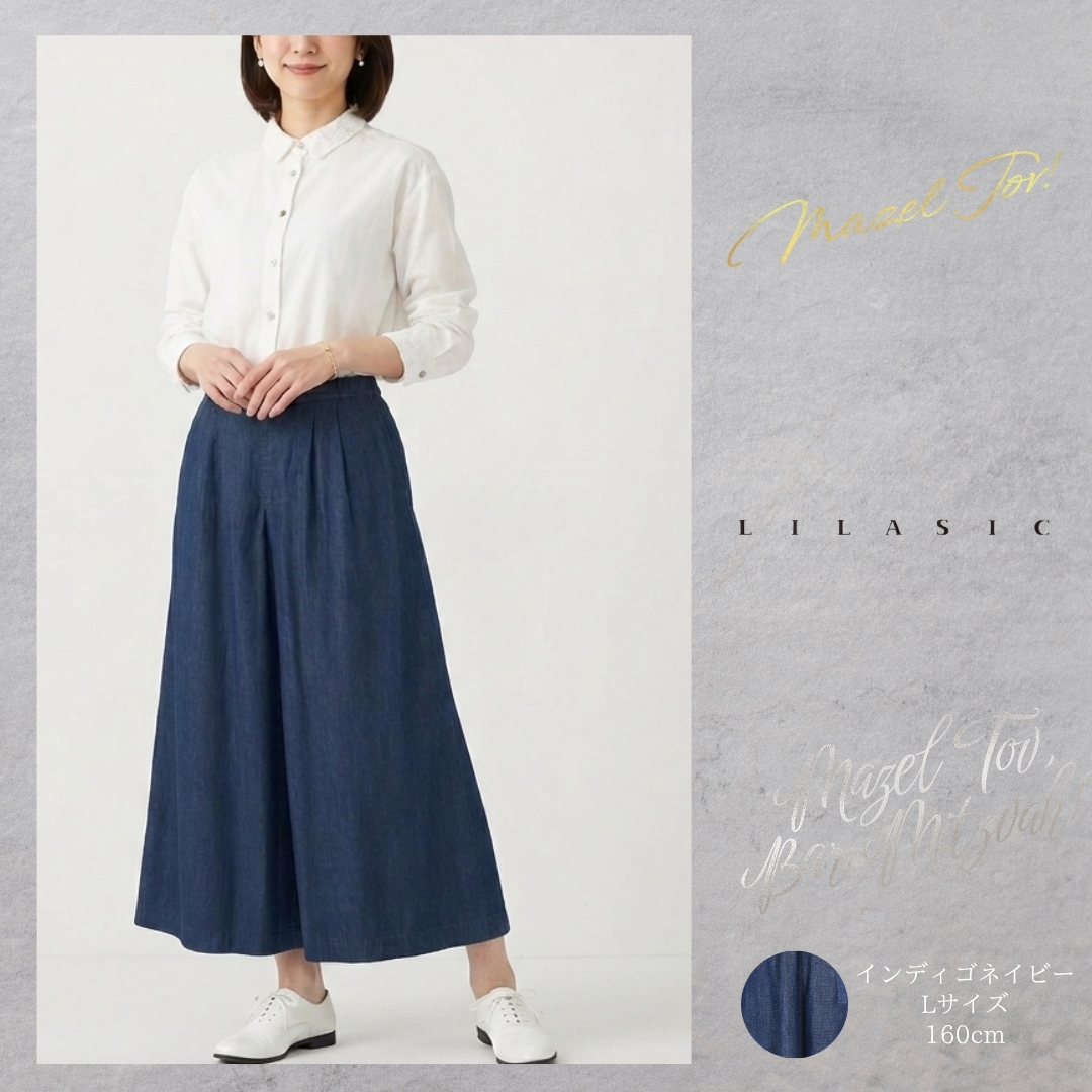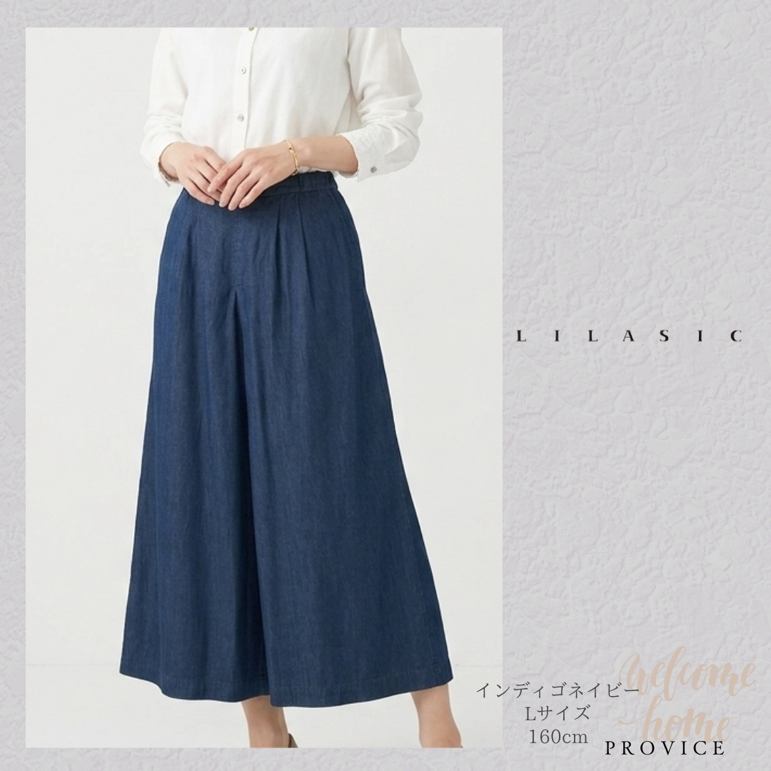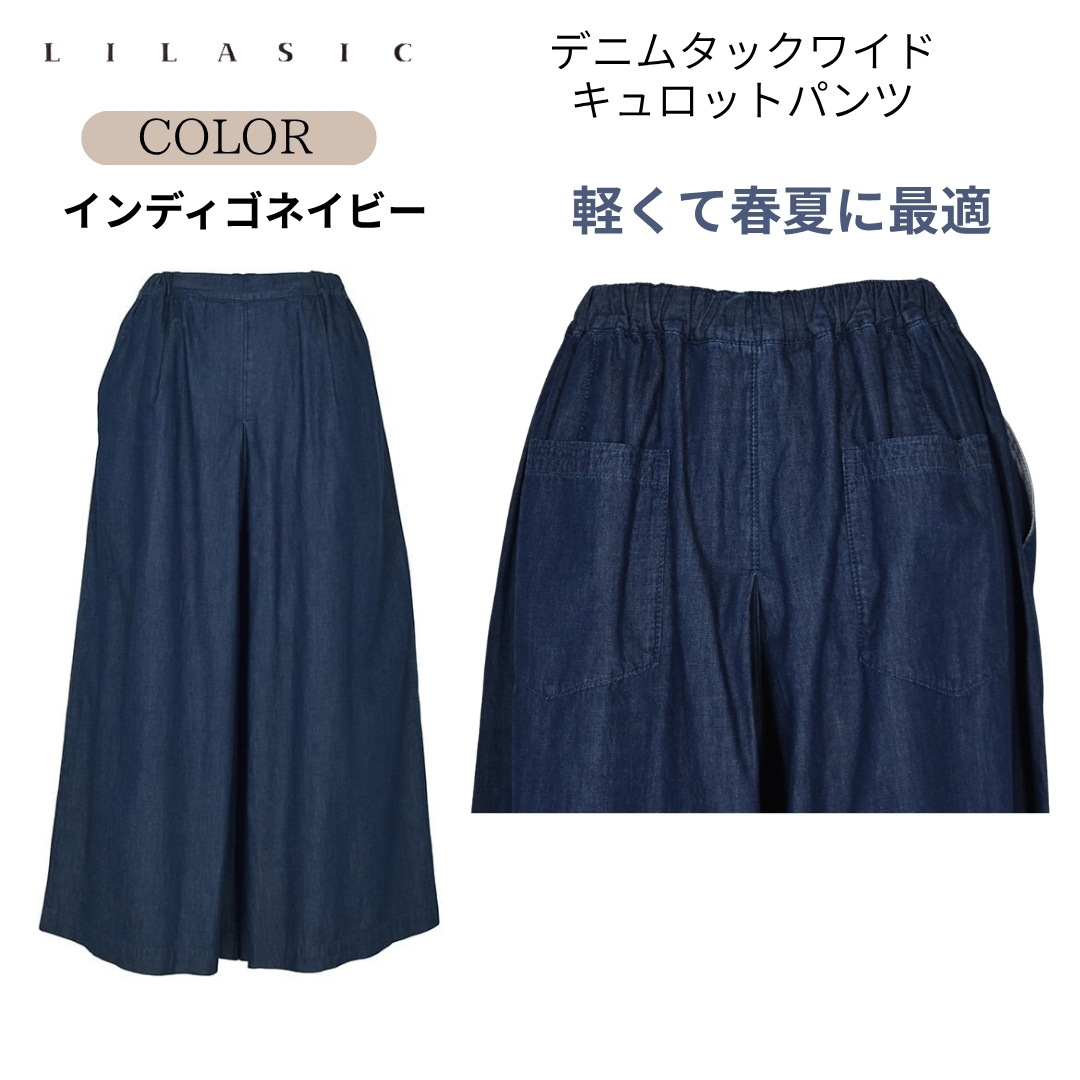 LILASIC/SBB36042/リラシク/デニムタックワイドデニムパンツ/キュロットパンツ/春夏デニムスカンツ/ウエストゴムデニムワイドパンツ/薄生地デニムキュロット