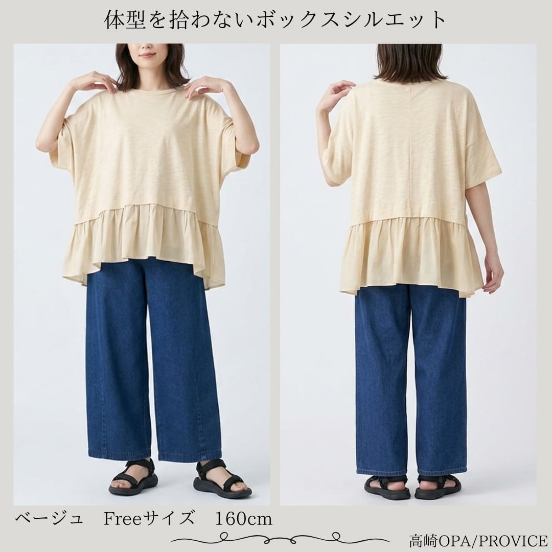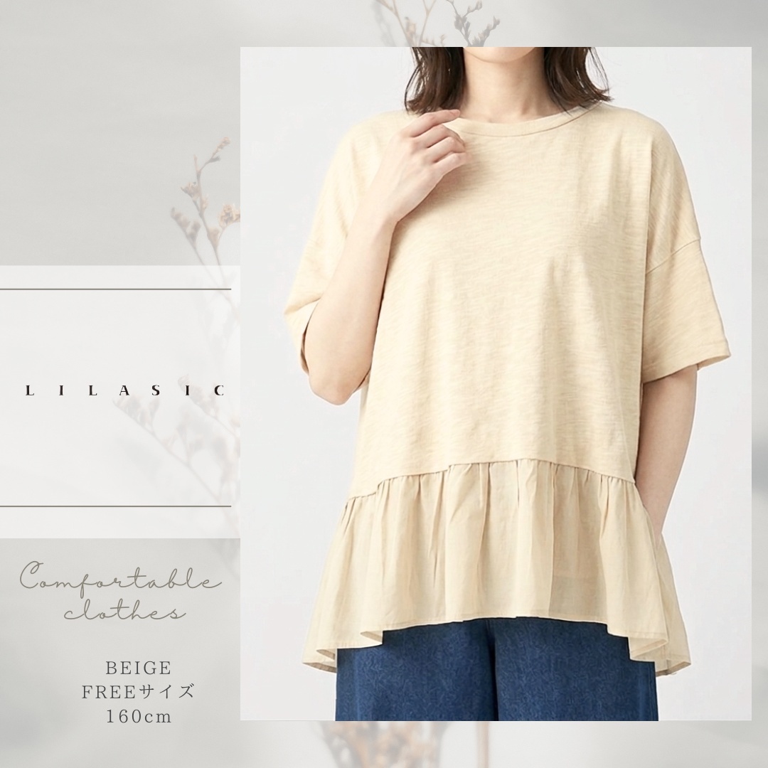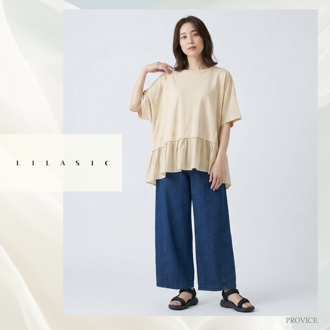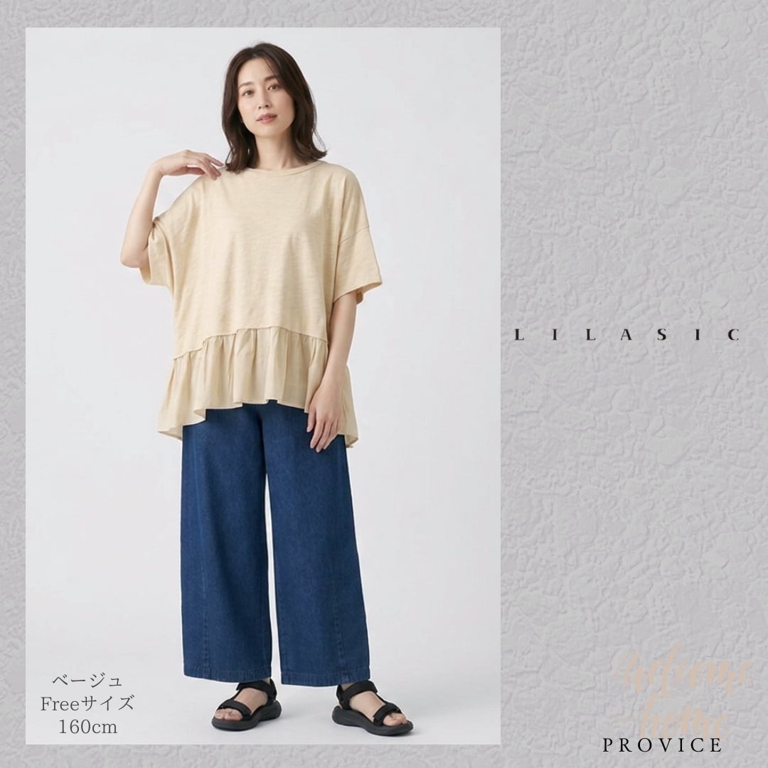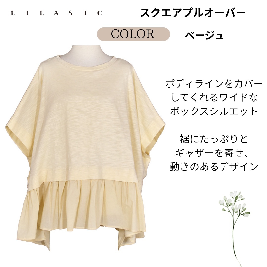 LILASIC/SCCE6064/リラシク/スクエアプルオーバー/薄軽いトップス/春夏ボックスシルエット/天竺T/ペプラムプルオーバー/上品半そでクルーネックT/ラクちんTシャツ