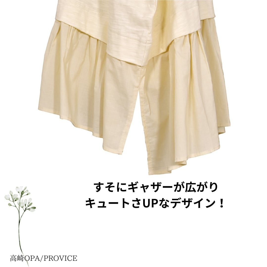 裾にたっぷりとギャザーを寄せた、動きのあるデザインがスタイリングのポイントになります。
