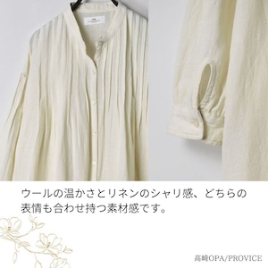 INSL22604 (ワンピース) WOOL/LINEN PLAIN BANDED COLLAR PINTUCK DRESS
